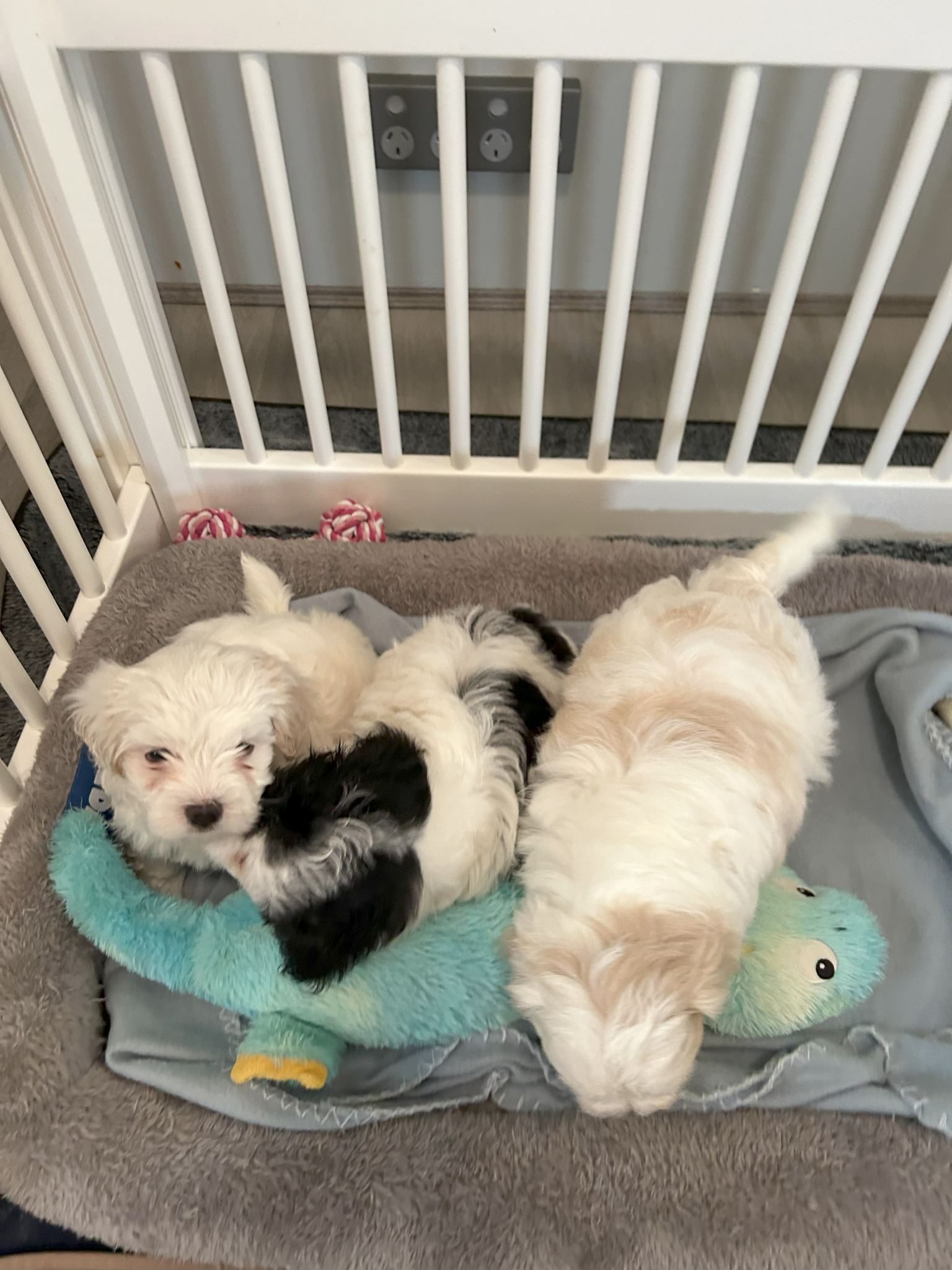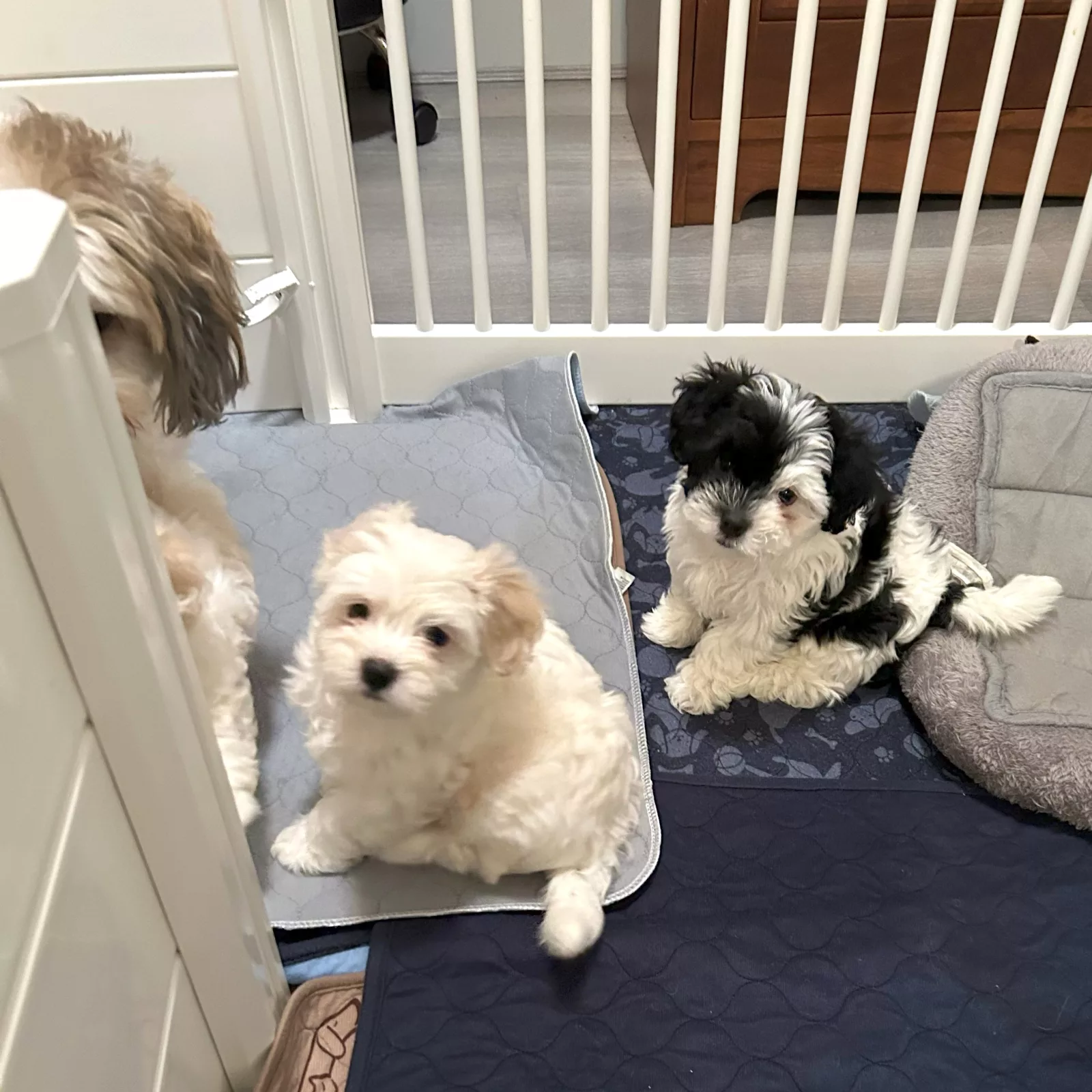 We have a 1 Male (gold and white) left out of a litter of 3 - high-quality, beautiful puppies with a sweet nature. Fully chipped and double vaccinated with pet passports, pet basket full of essentials, and more of what they like included in the quality gift basket with lifetime ongoing breeder support. Puppies can also be viewed on site with parents if you want to visit. Both his testes are already down, and he has perfect teeth and a mouth, and he is very friendly as well.