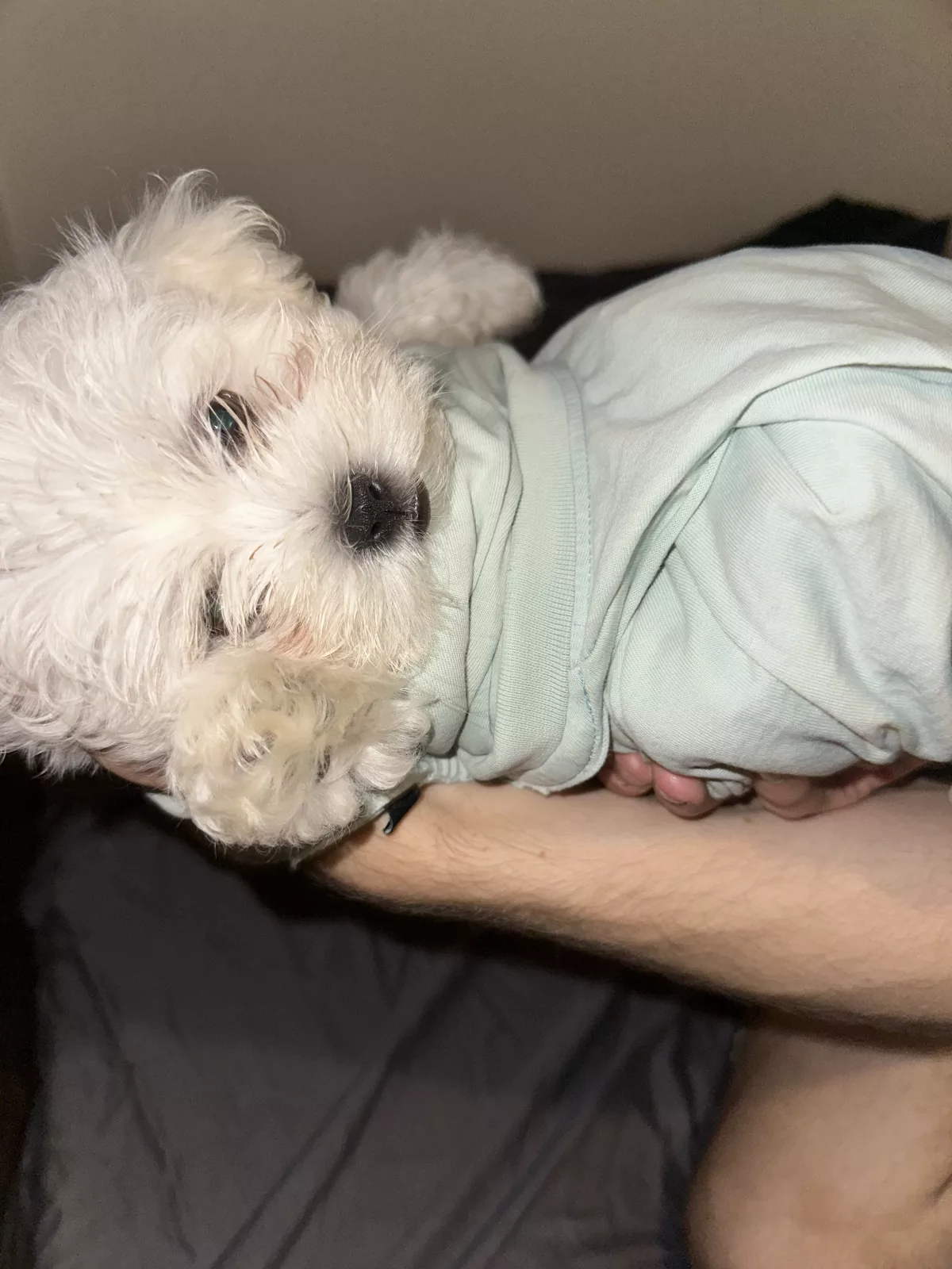 We have one beautiful placid Maltese Shih Tzu male available. He is white coloured with apricot ears.