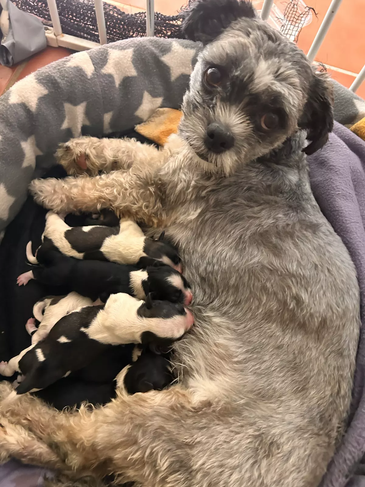 Puppies are starting to wean, plus starting to toilet train and use a doggy door.