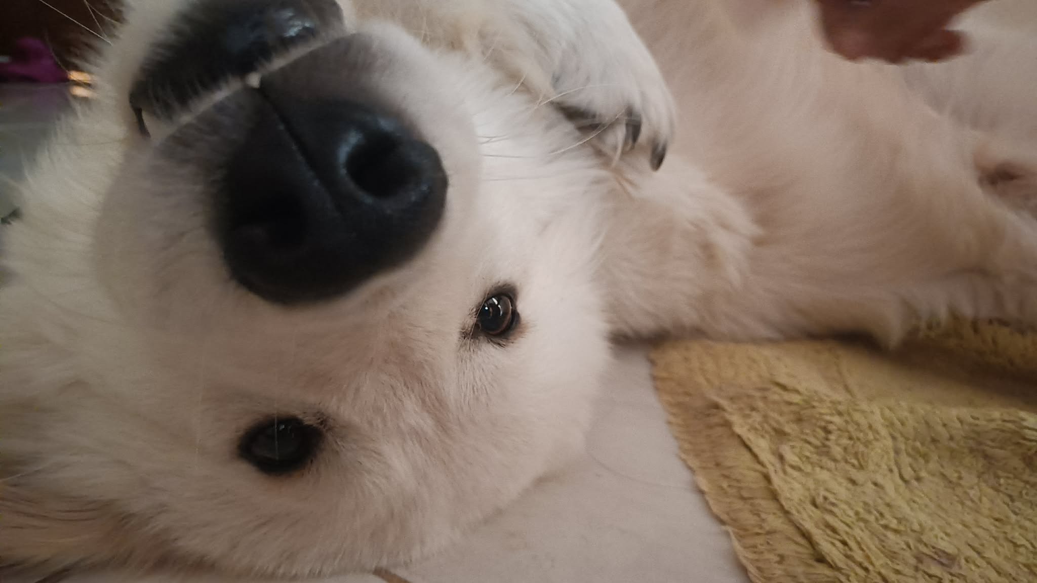 - knows quite a number of tricks (sit, stand, lay down, crawl, paw, come, go, etc.)