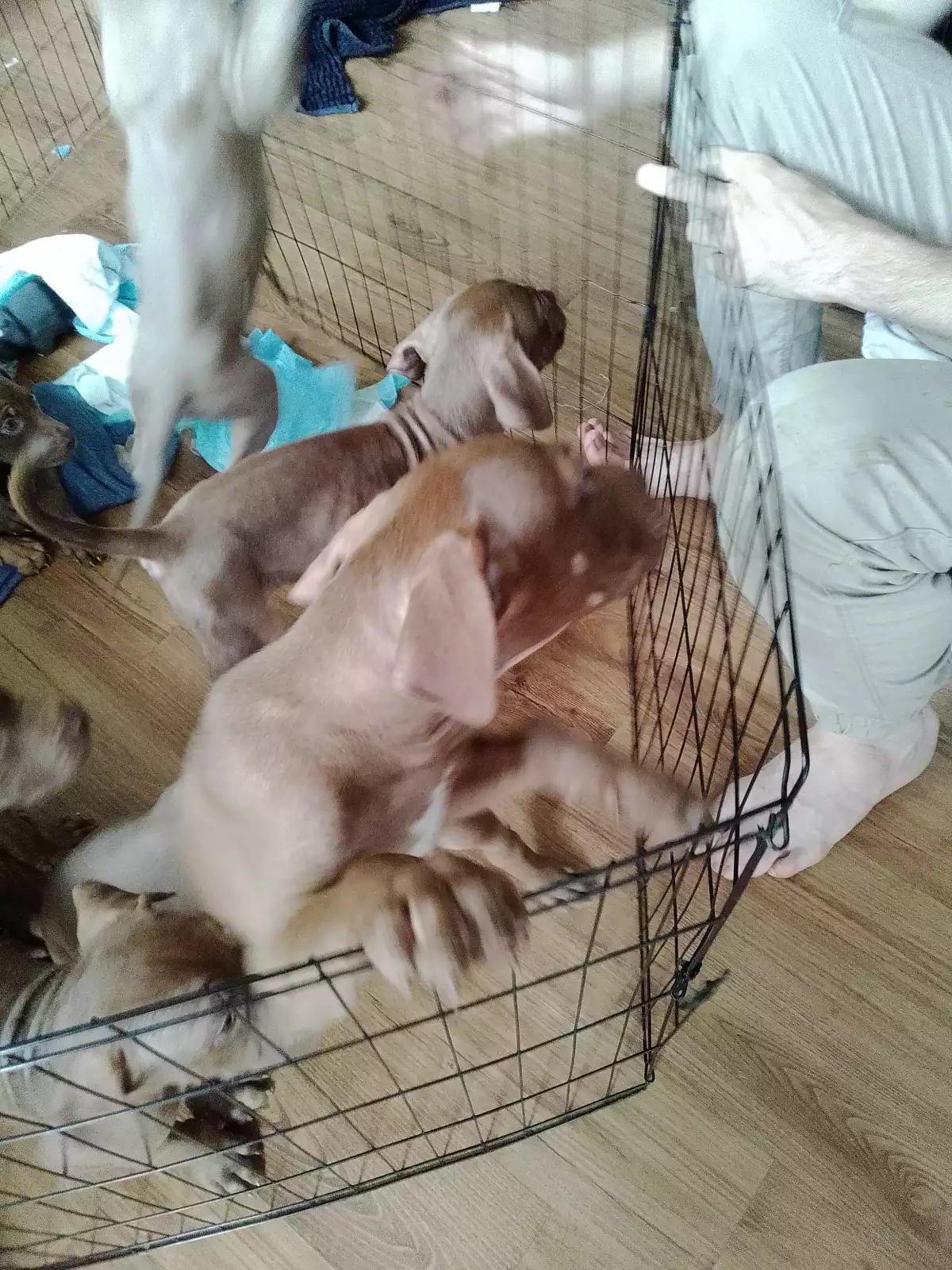 Dogs have access to: warm bedding, water at all times, ample space to exercise, natural light