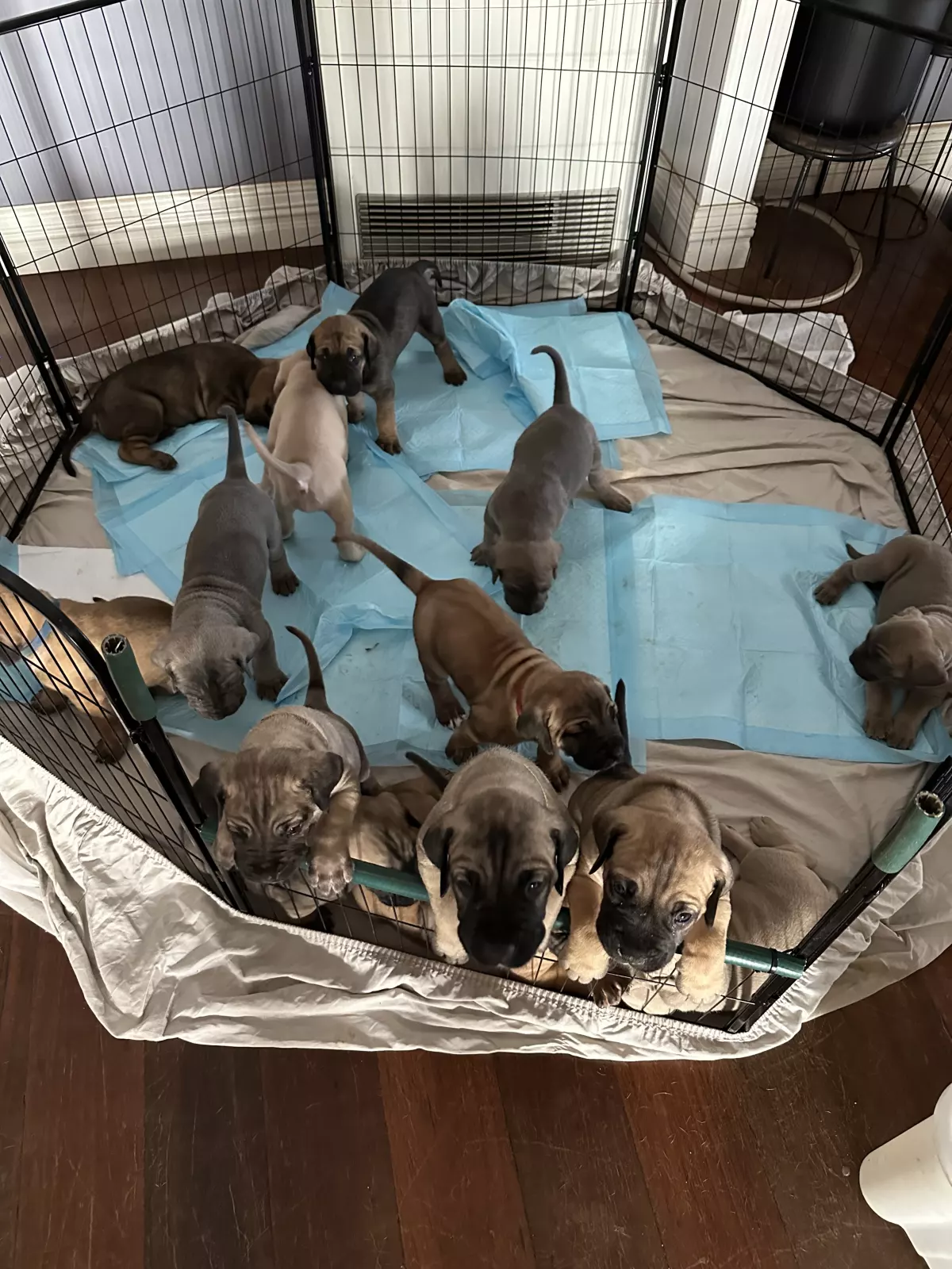 All puppies are happy, healthy, chunky, and wrinkly with strong temperaments. They are being raised in a loving family environment with children and other dogs, ensuring excellent socialisation.