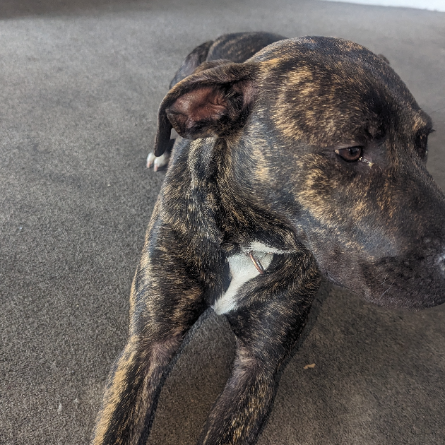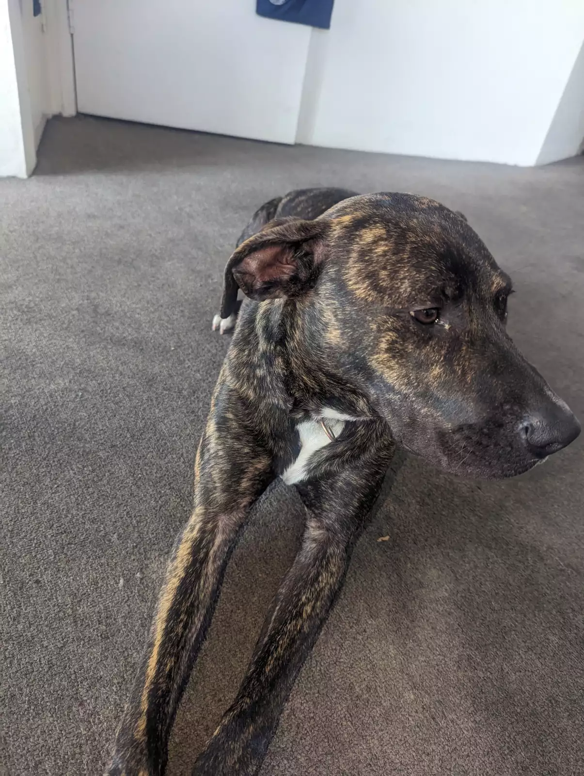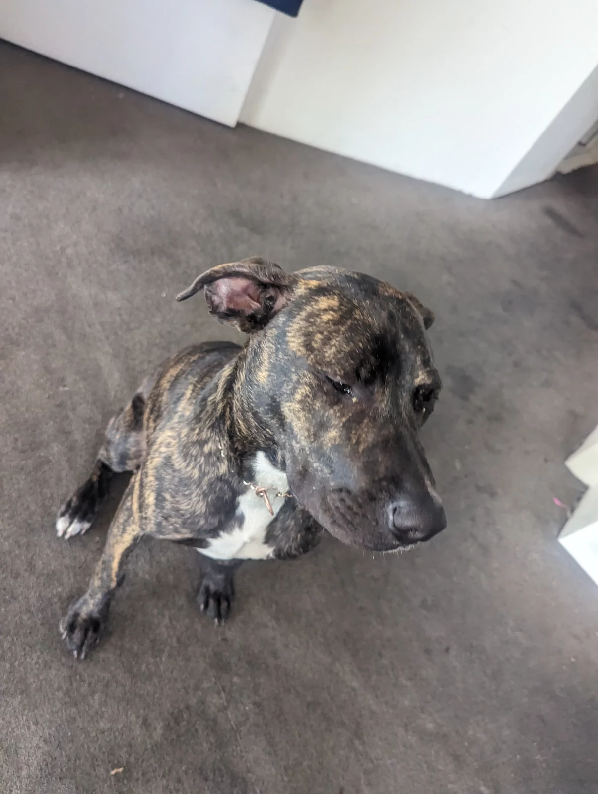Male Staffordshire Bull Terrier, 11 months old, looking for a loving forever home. He is fully vaccinated, microchipped, and desexed, making him ready to join a new family immediately. This handsome boy is very affectionate, energetic, and well-trained, making him a wonderful companion for both children and adults. He is friendly with other dogs, playful, and thrives on attention and interaction, enjoying walks, playtime, and cuddles alike.
