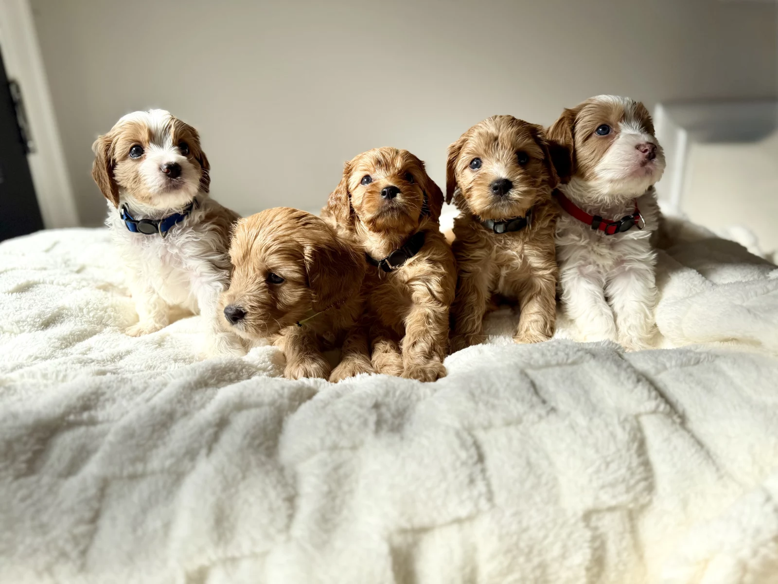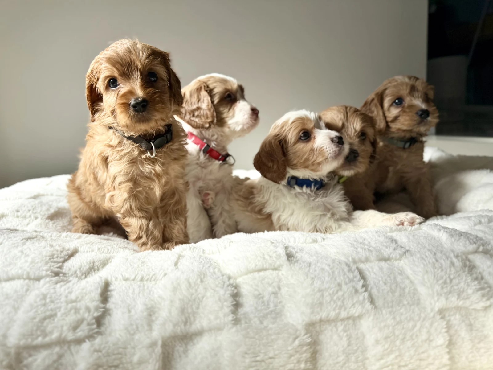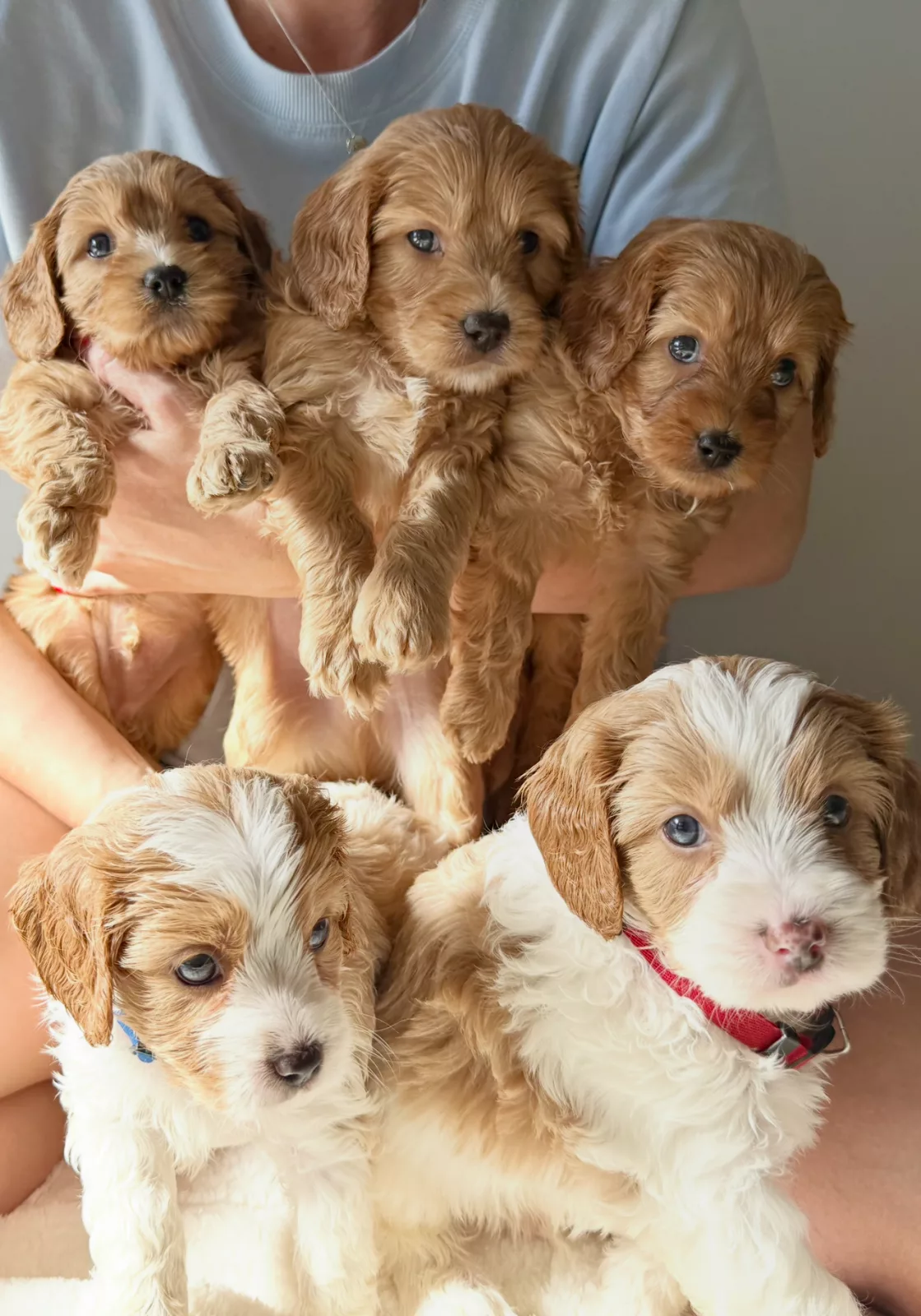 We have 7 beautiful F1 Mini Cavoodle puppies available, raised with love in our home: