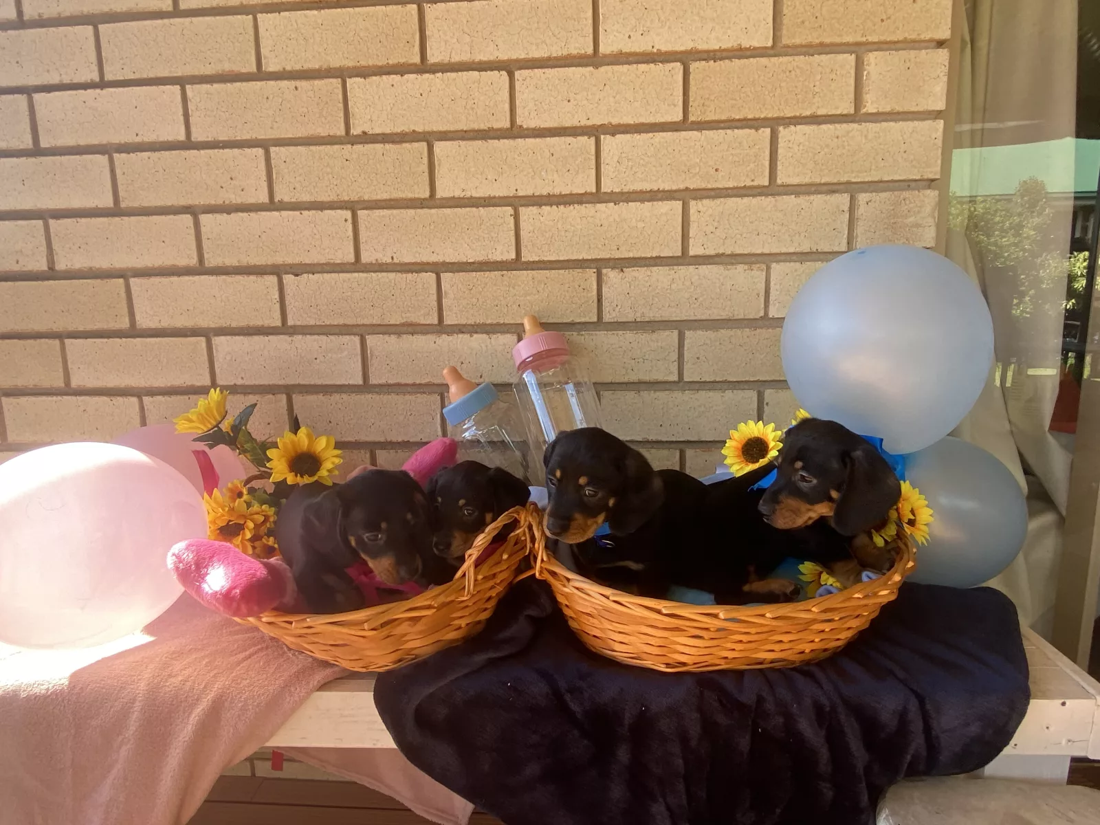 Hello! We have 4 beautiful purebred miniature dachshund puppies available now and ready to find their forever homes. These gorgeous pups were born on 22/6 and have been raised with care, love, and plenty of daily interaction in a family environment, helping them grow into confident, happy little companions.