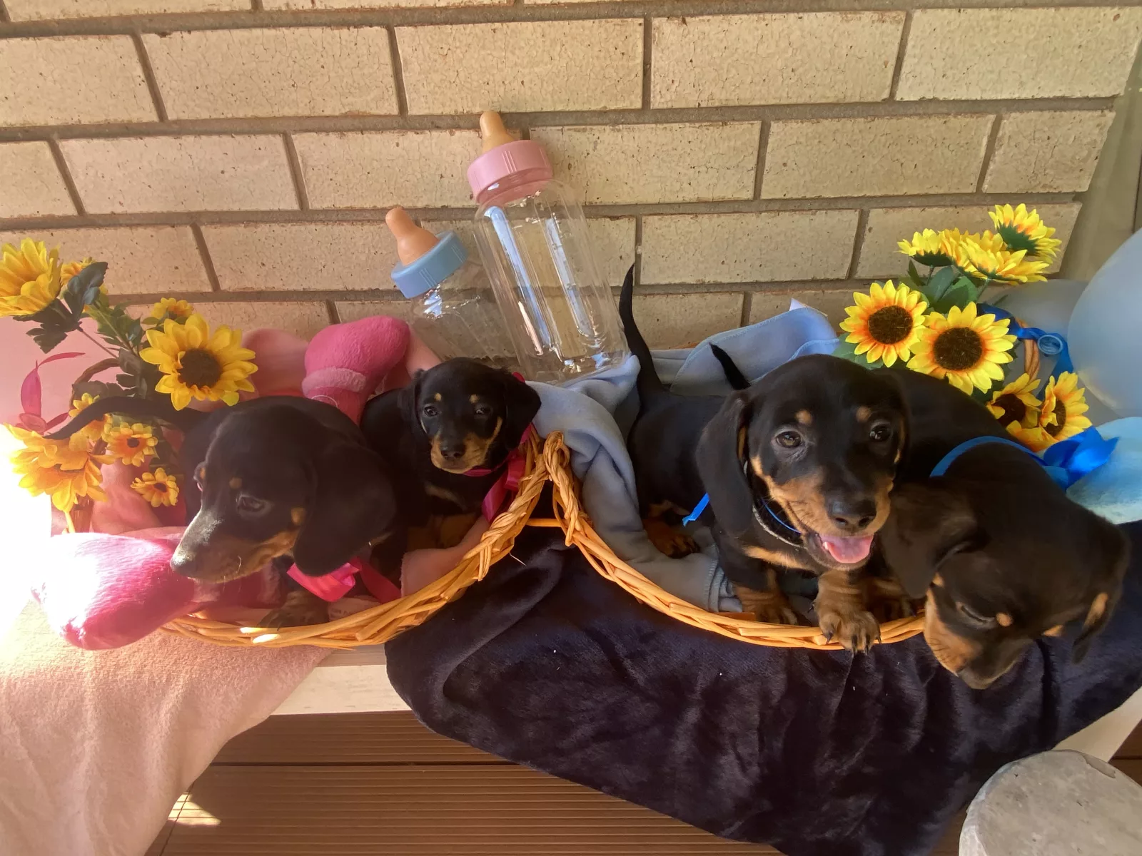 Hi, I have 4 beautiful purebred miniature dachshunds who are now ready for their forever homes. These gorgeous puppies have been raised with care in a loving environment and are already showing sweet, happy, and affectionate personalities. They are well handled and comfortable around people, making them a wonderful addition to the right families.