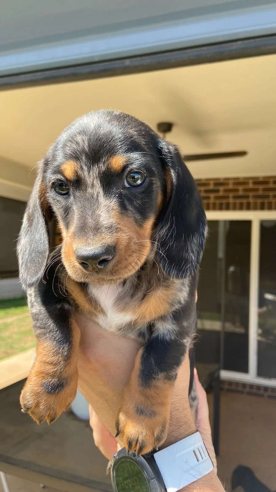 We also own both parents – mum is a black and tan and dad is a silver dapple – both with wonderful natures.