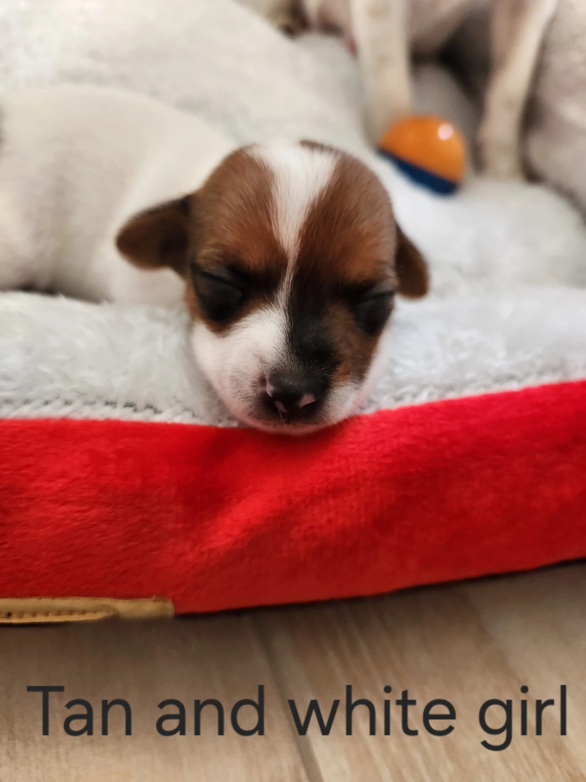 1 Tan and white girl with a long tail.
