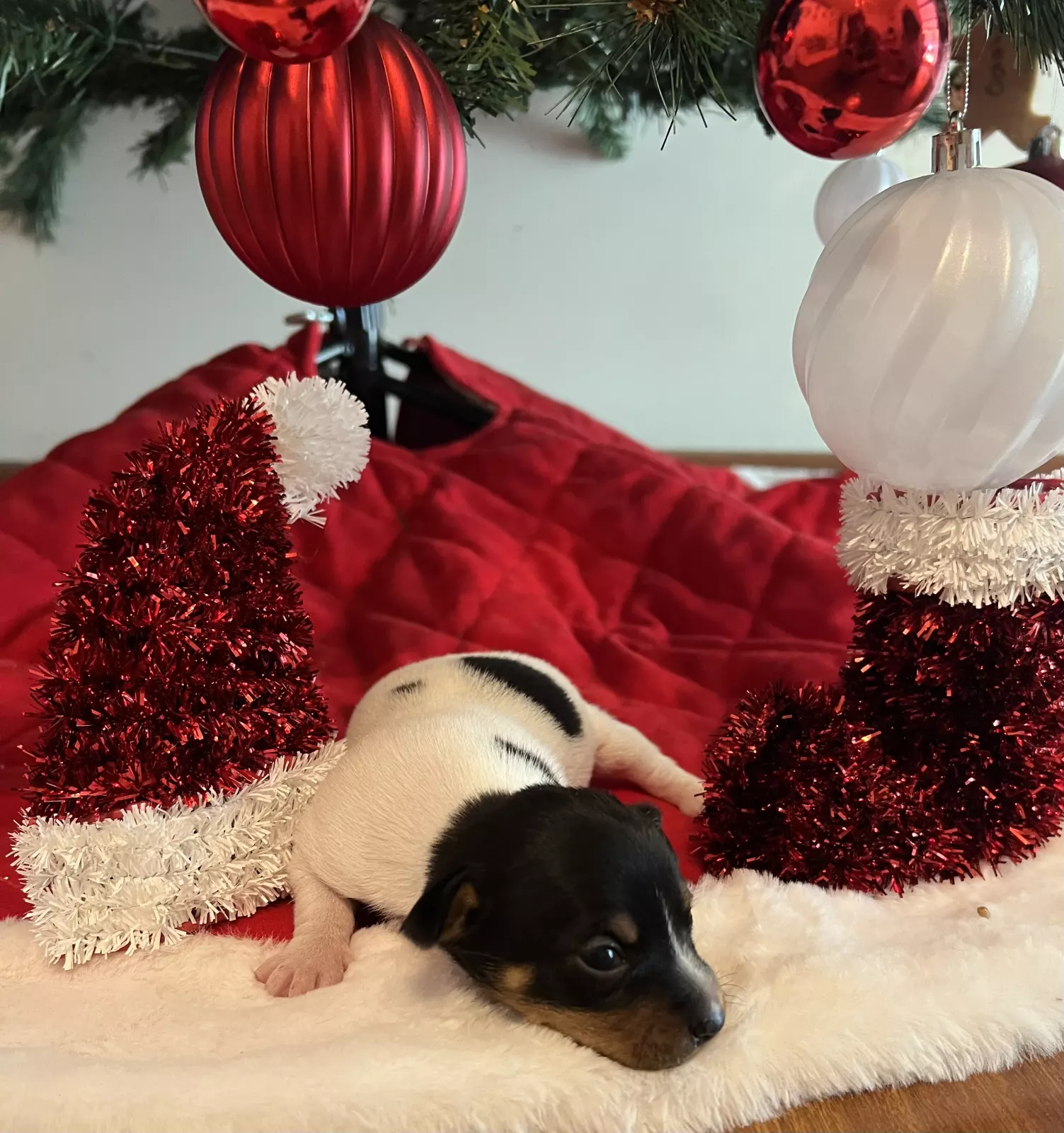 Gorgeous tri colour Mini Foxie male pup, born 9 December. Parents are outstanding type and temperament with this pup carrying the blue gene.