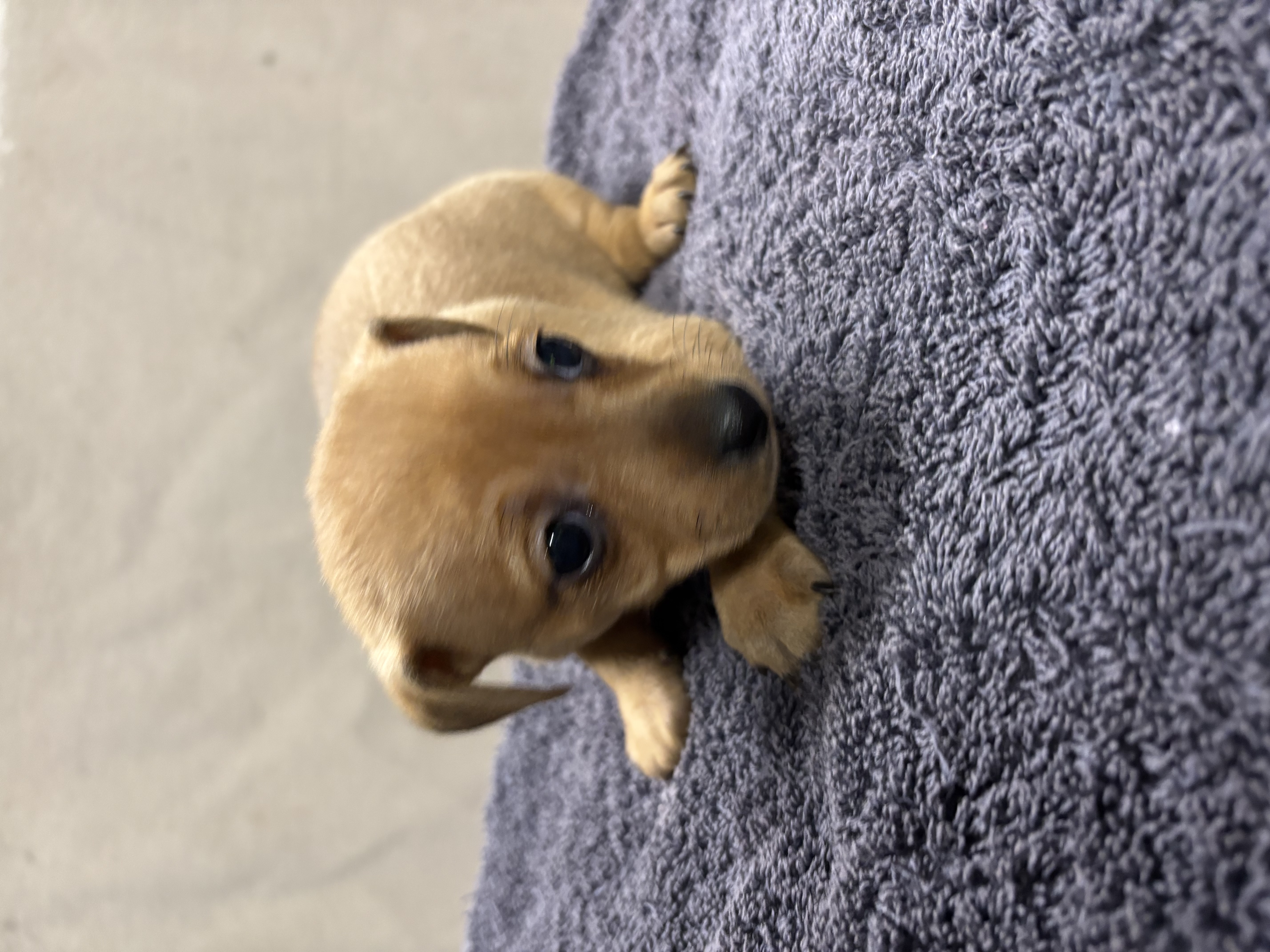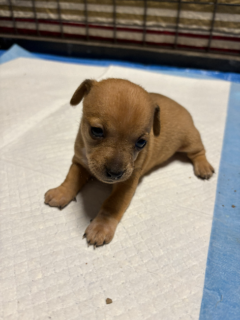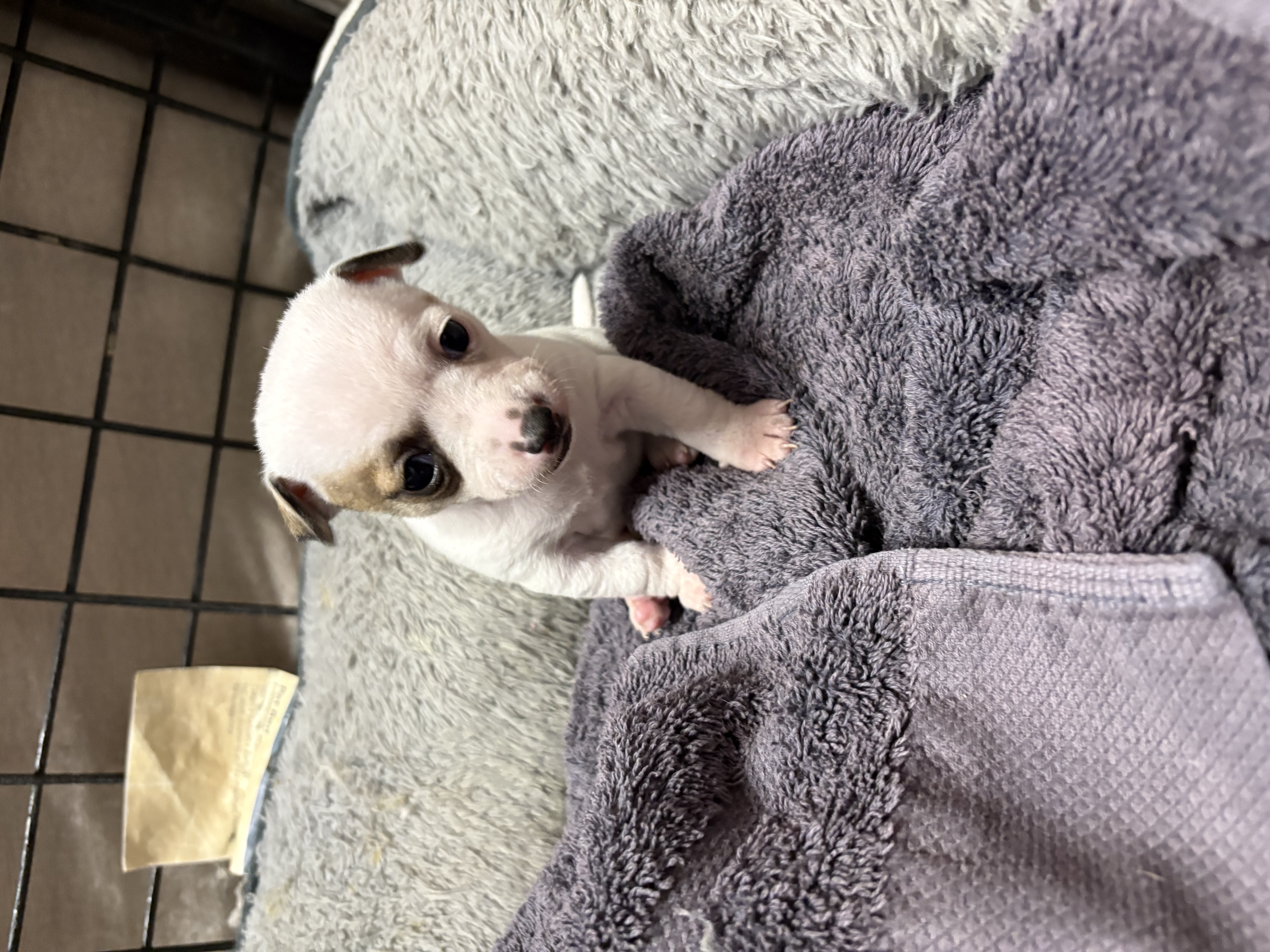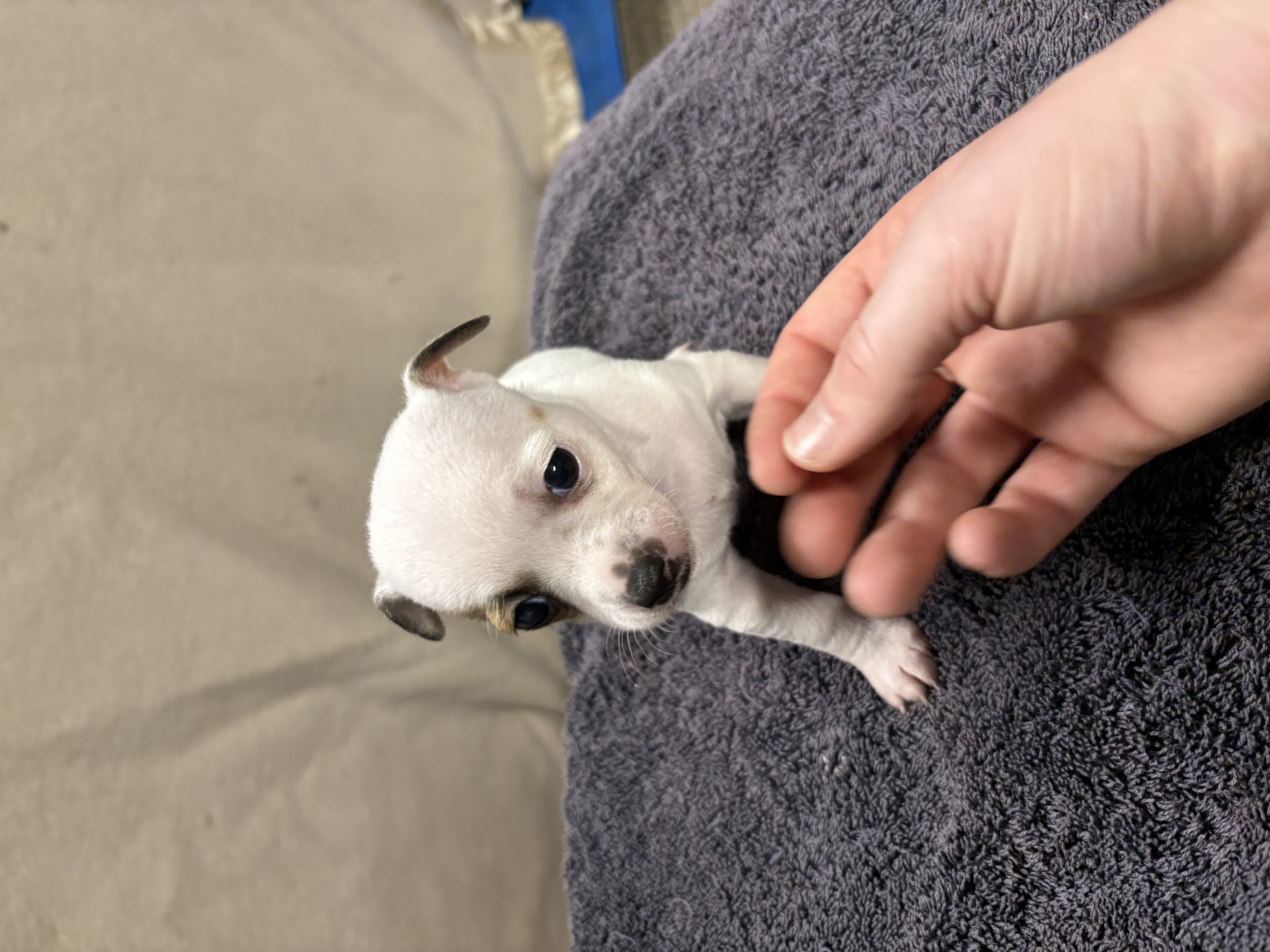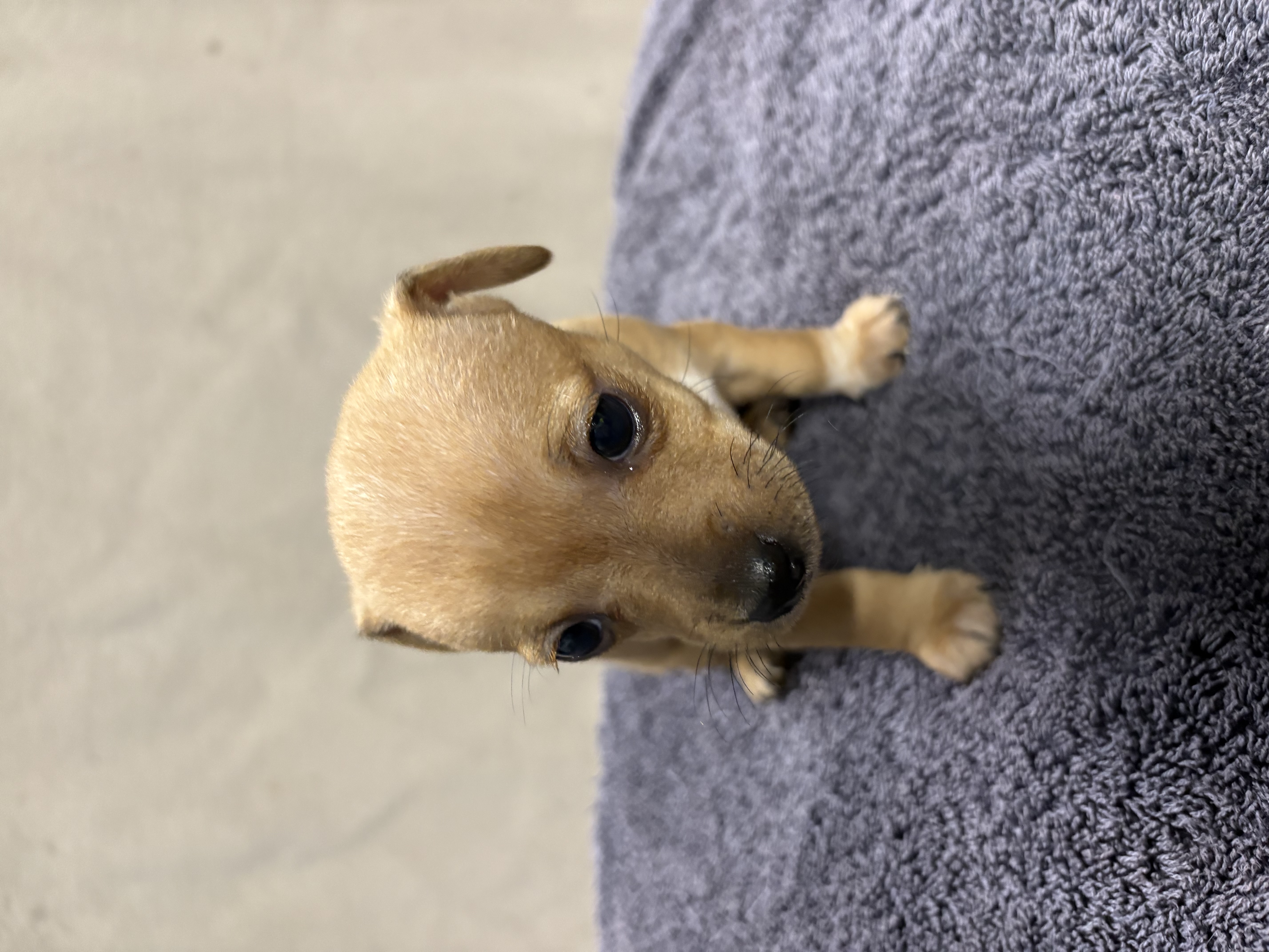 Trained to toilet on a grass mat or pads. Have been eating either raw mince, cooked chicken thigh, or my dog food satchel.