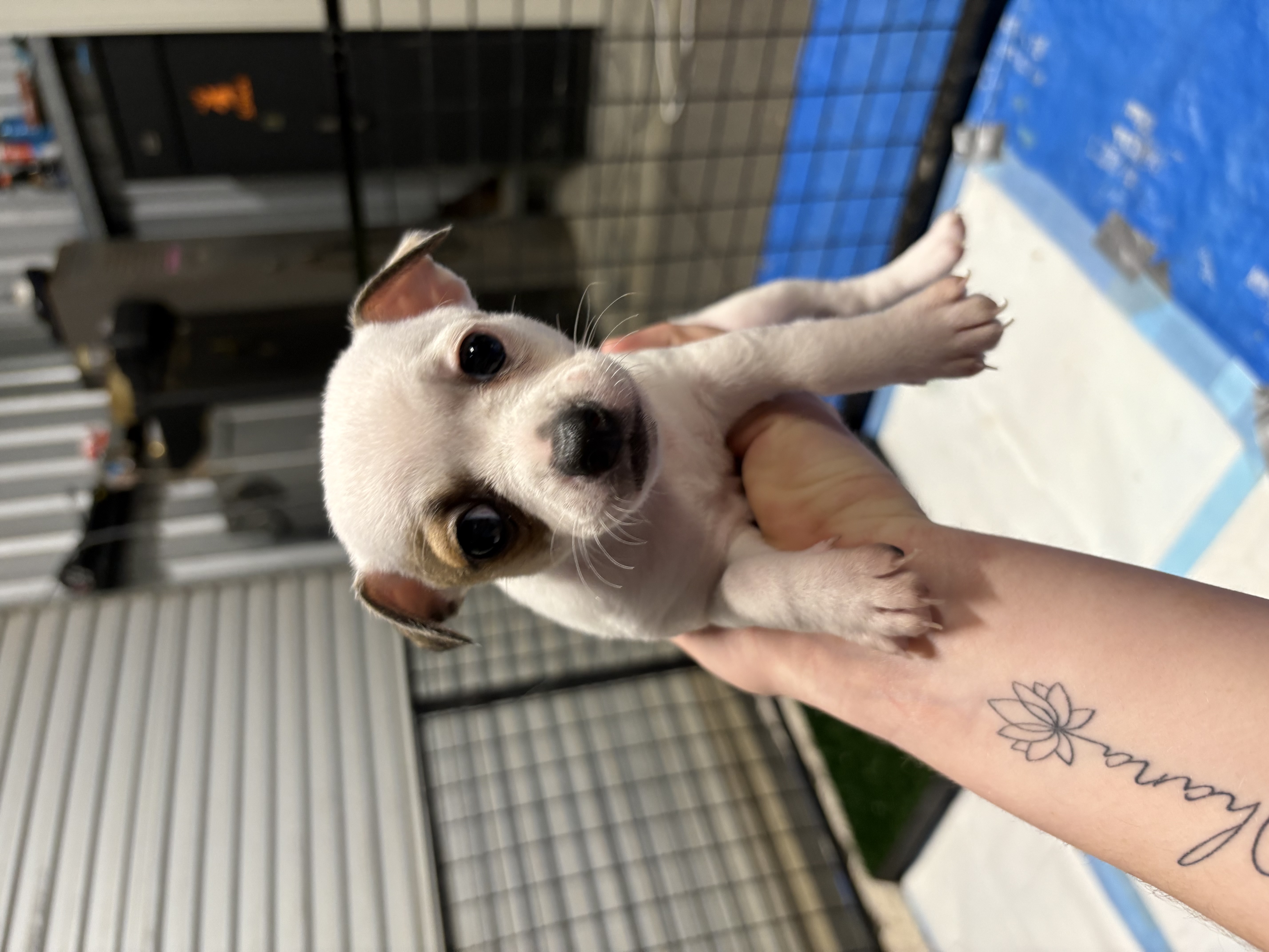 3 female pure-breed miniature fox terrier pups. 8 weeks old. 2x tan and 1x white tri colour.