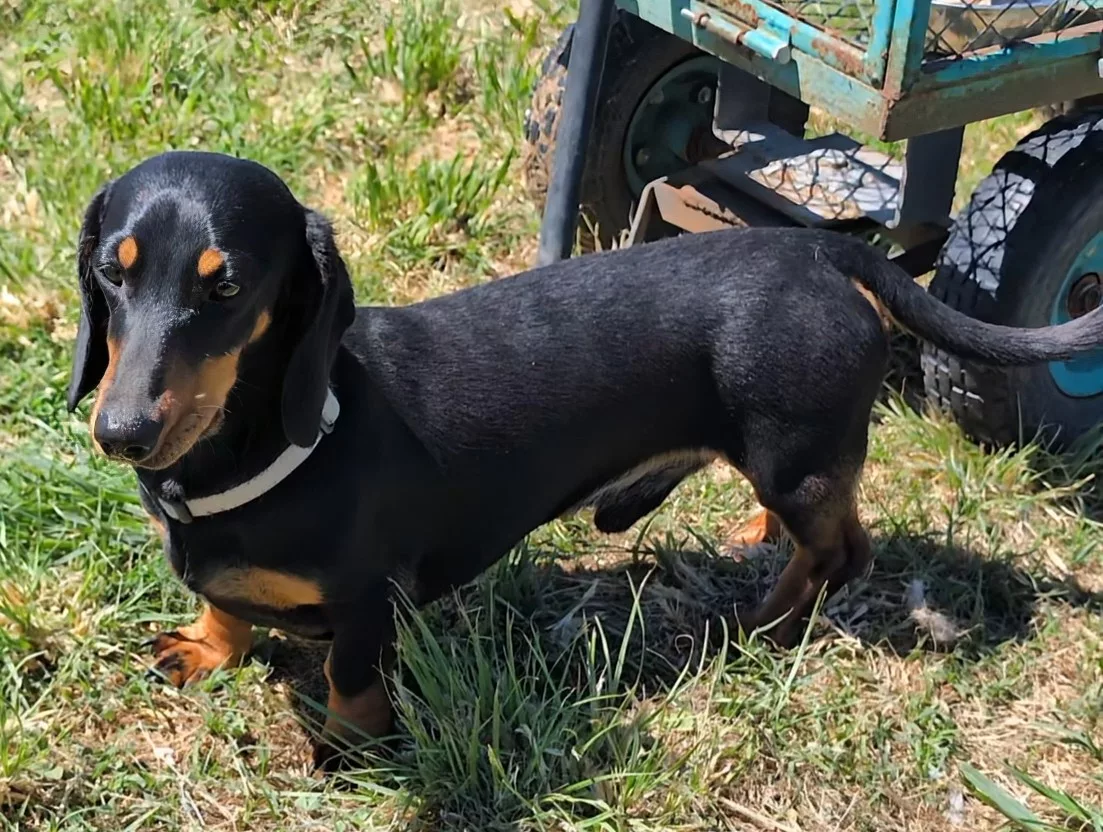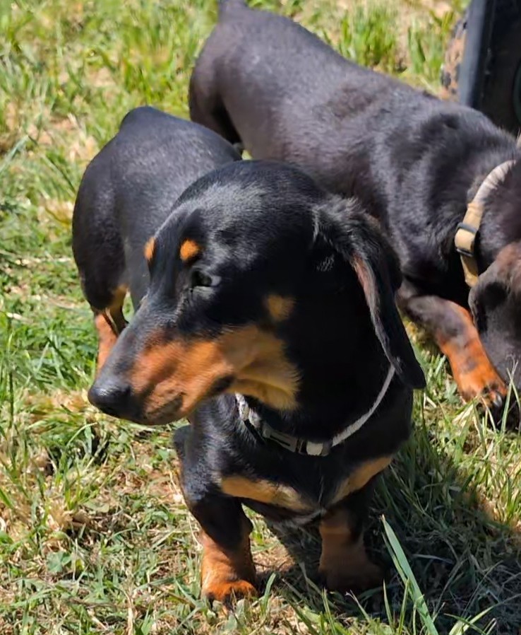 Due to an initial delay and then the original expected owner relocating overseas, Reggie is available again for only the best home. He is a black and tan smooth haired mini dachshund carrying chocolate, longhair and pied, PRA clear. He is mocrochipped.