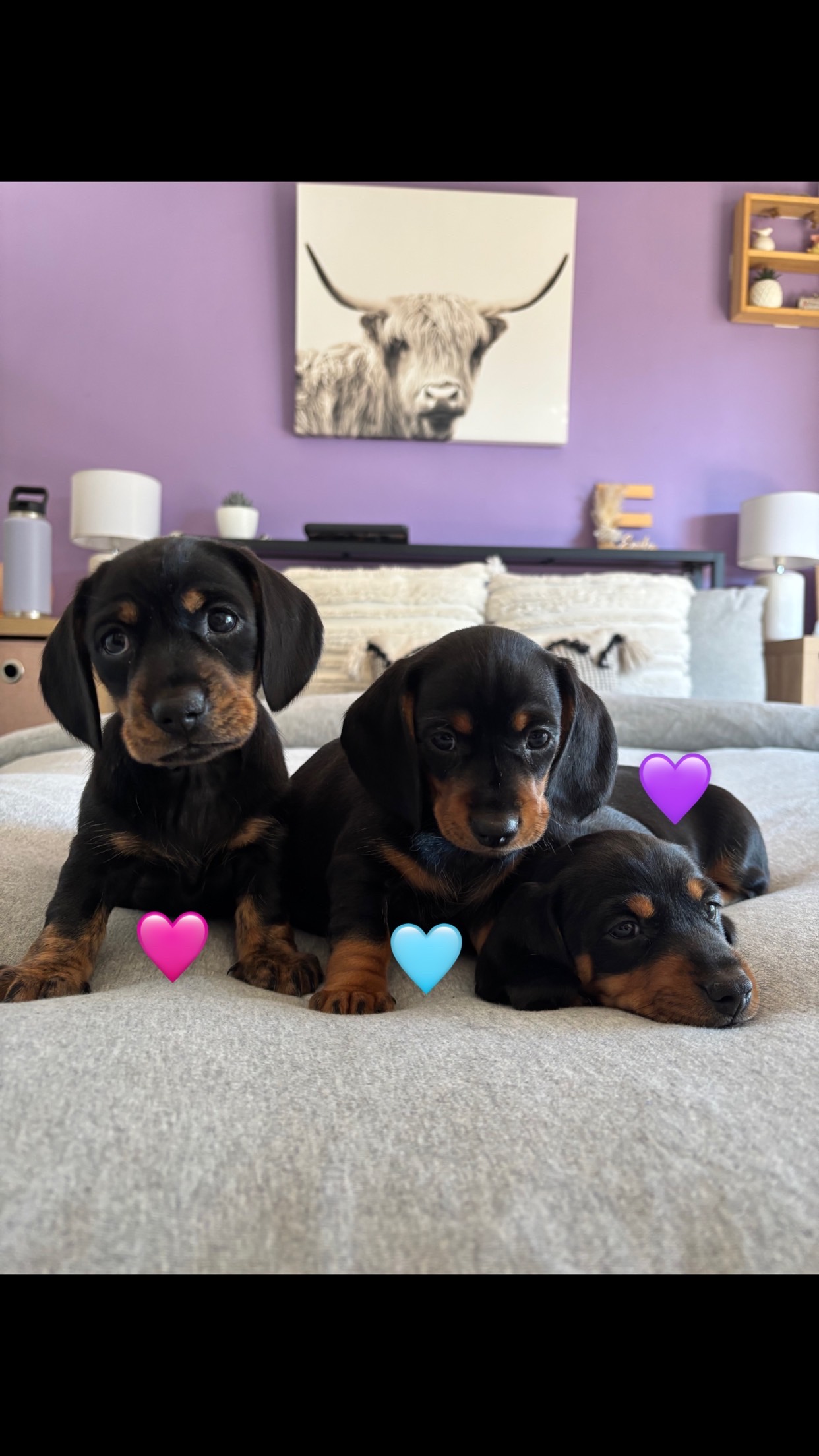 1 black and tan male and 1 black and tan brindle female available, both carrying long hair and cream. These two are now 10 weeks old and are ready to go to their forever homes. They have had a great start to life and are growing into confident, happy little puppies.