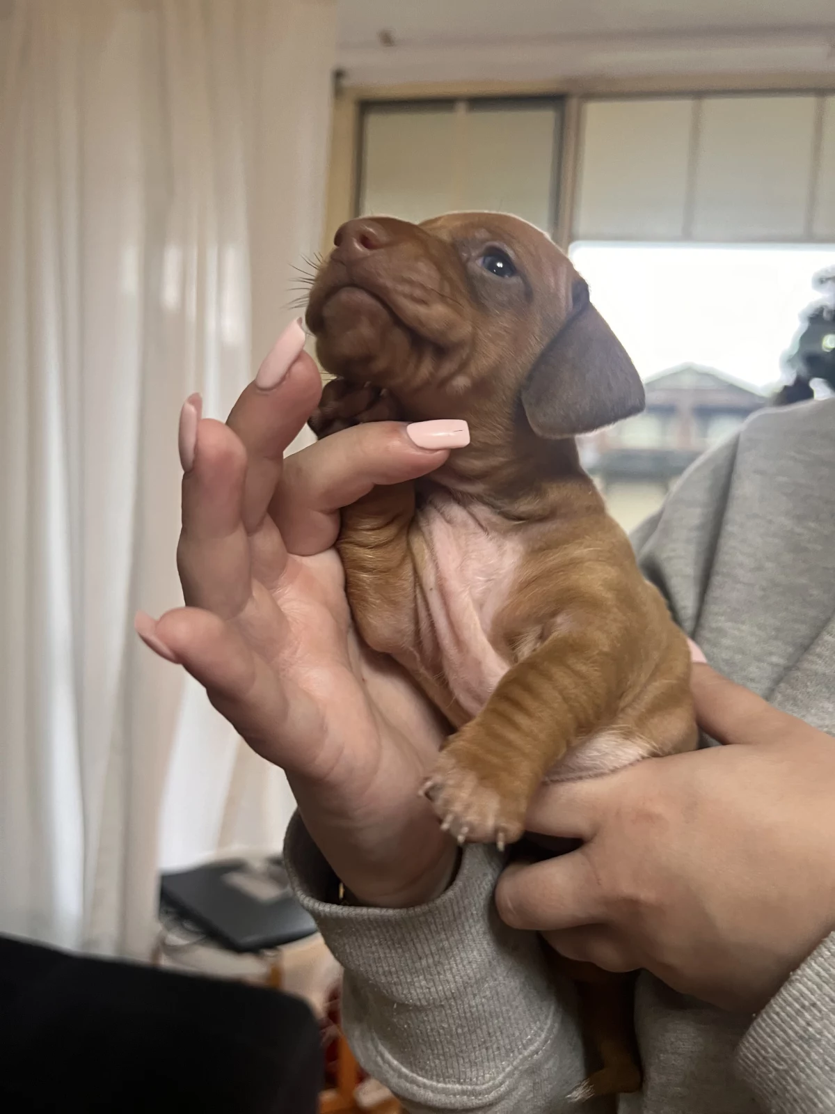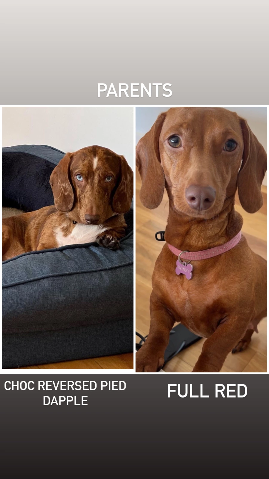 Mum is a solid red, full miniature dachshund with a lovely nature.