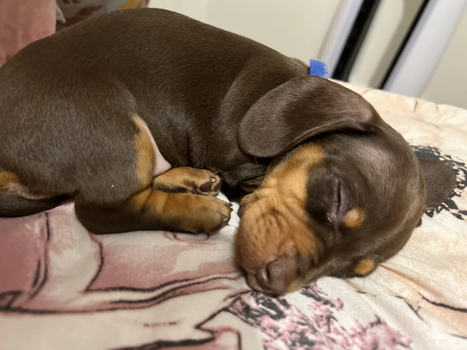 Mother Mackenzie and Father Franklyn are Chocolate & Tan miniatures. They are family owned dogs, they are very loving, caring, playful family oriented dogs.