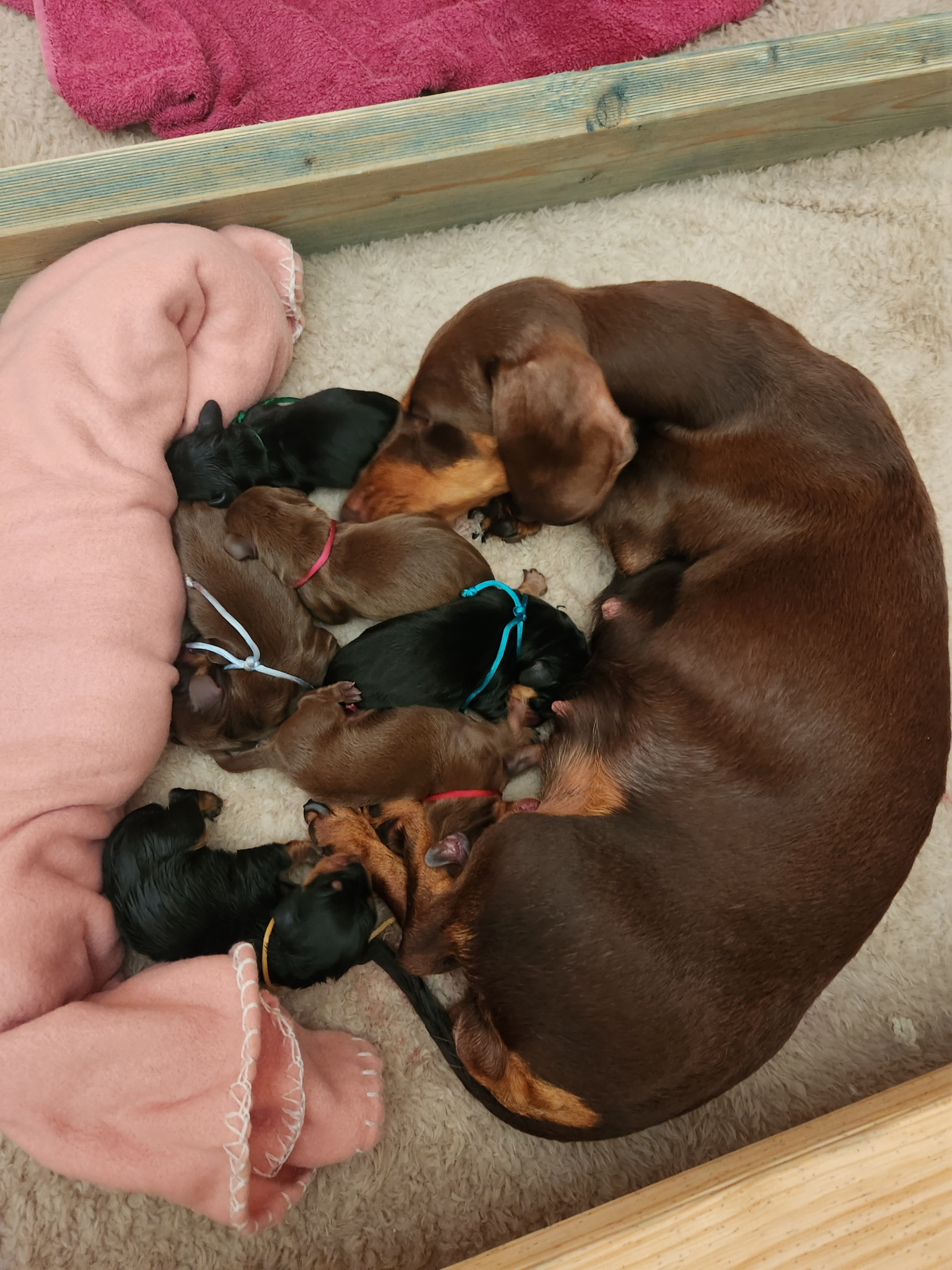 We have 6 beautiful mini Dachshund Puppies looking for their new homes! We have 4 girls (3 black and tan, 1 Chocolate & Tan) and 2 boys (chocolate & Tan). Coco (mum) is a mini chocolate & Tan and Charlie (dad) is a black & Tan. Both parents can be viewed aswell as these to doggos are companions! This is cocos first litter of puppies. We exect to meet anyone wanting to purchase a puppy to make sure you are the right fit for our little puppies and are happy to schedule play dates with your new baby once we have taken a deposit. DEPOSITS are NOT refundable under any circumstance. Coco and Charlie are our world and we would love nothing more then our babies puppies to be going to beautiful homes!