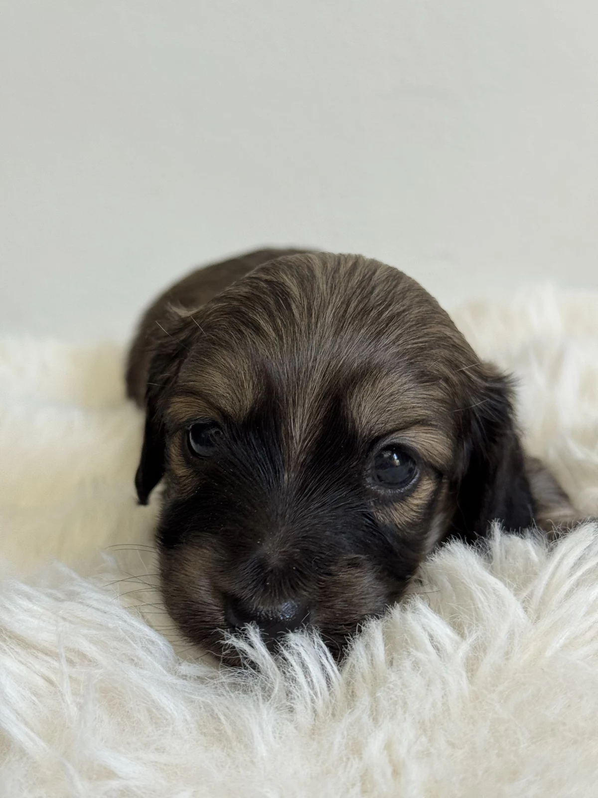Zazu (dad) - purebred pedigree papered miniature Longhaired Dachshund (ANKC registered) - Black and Tan (5.5kgs)