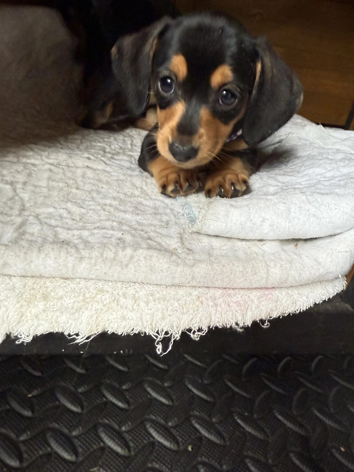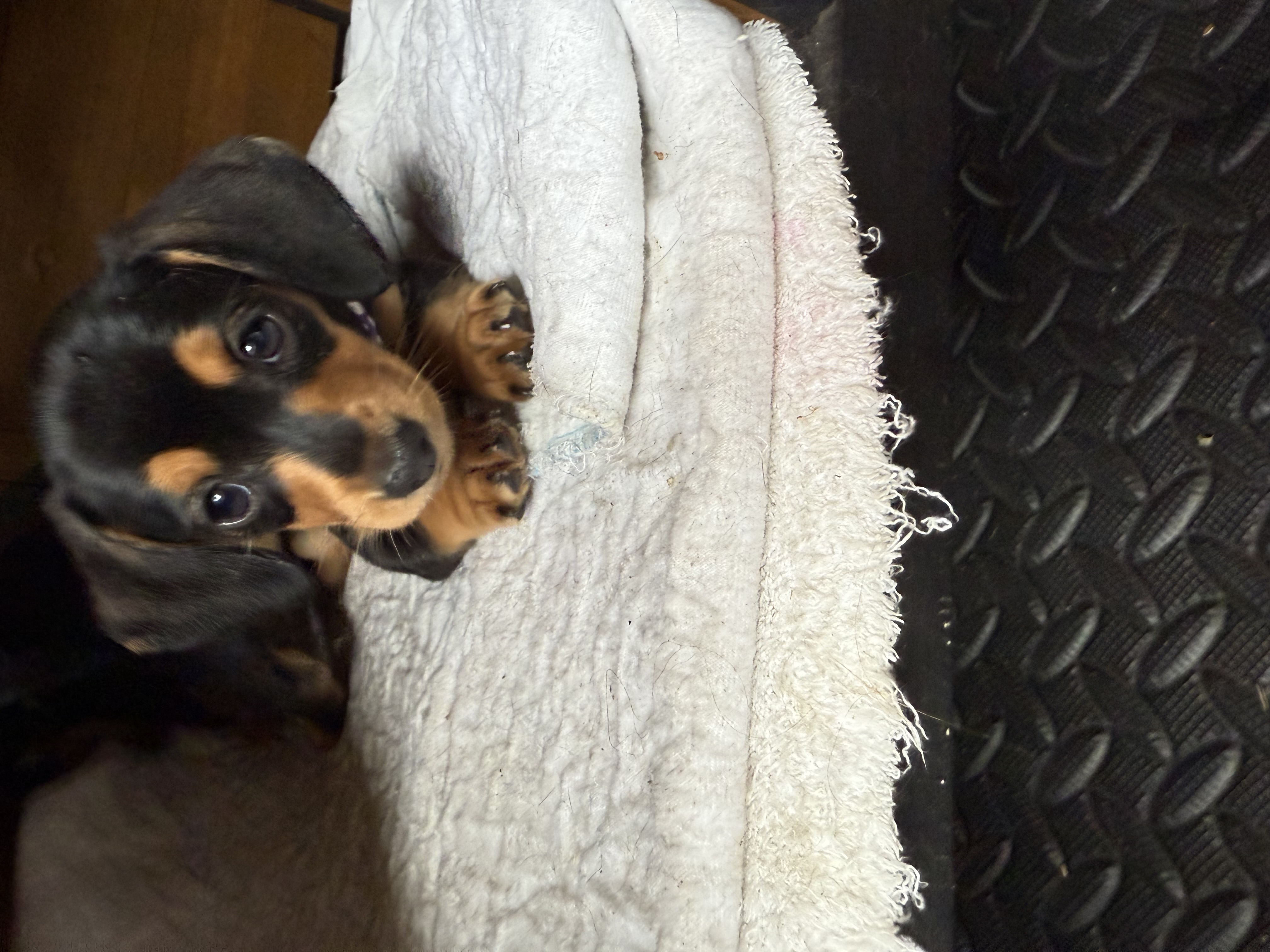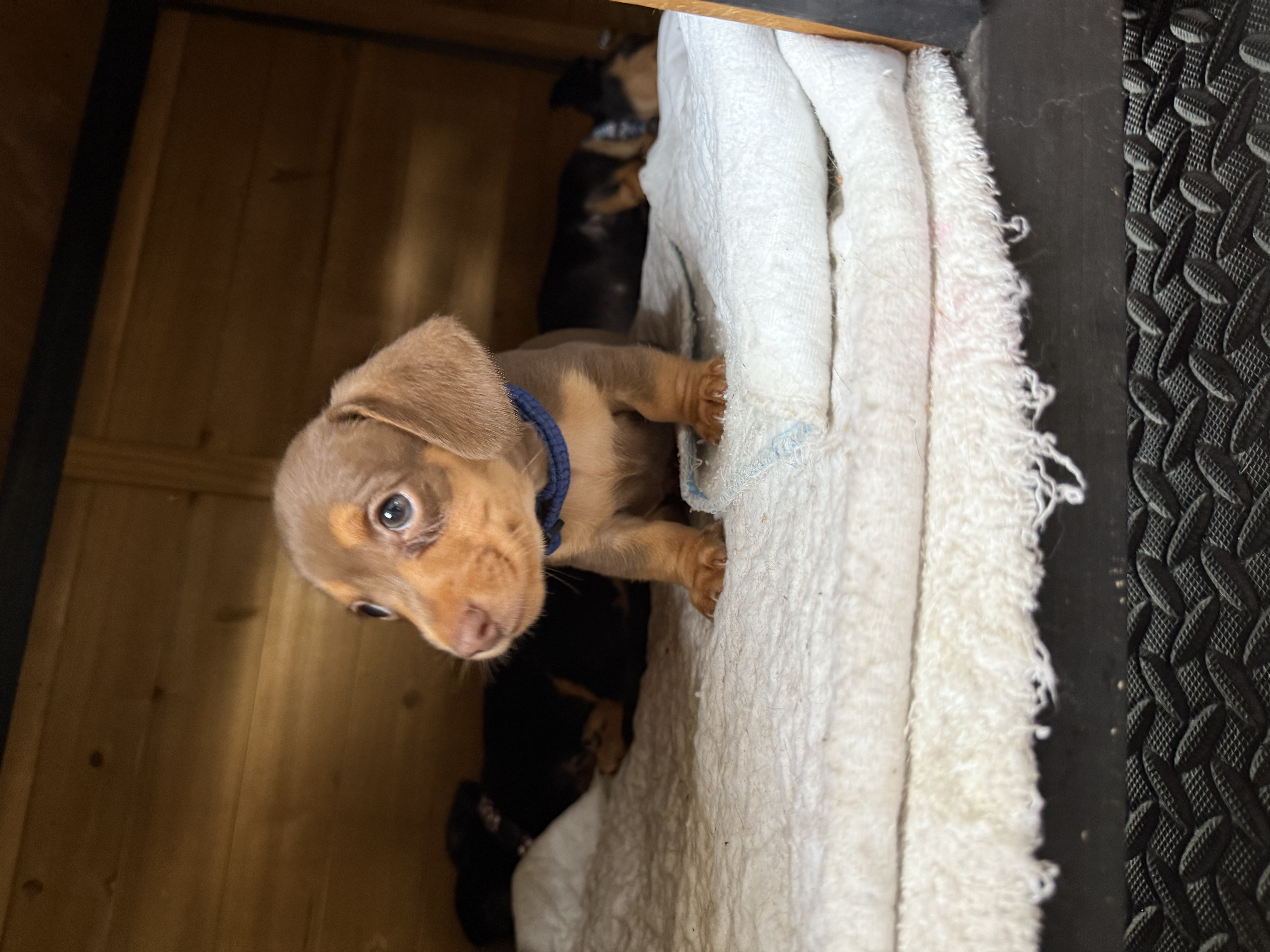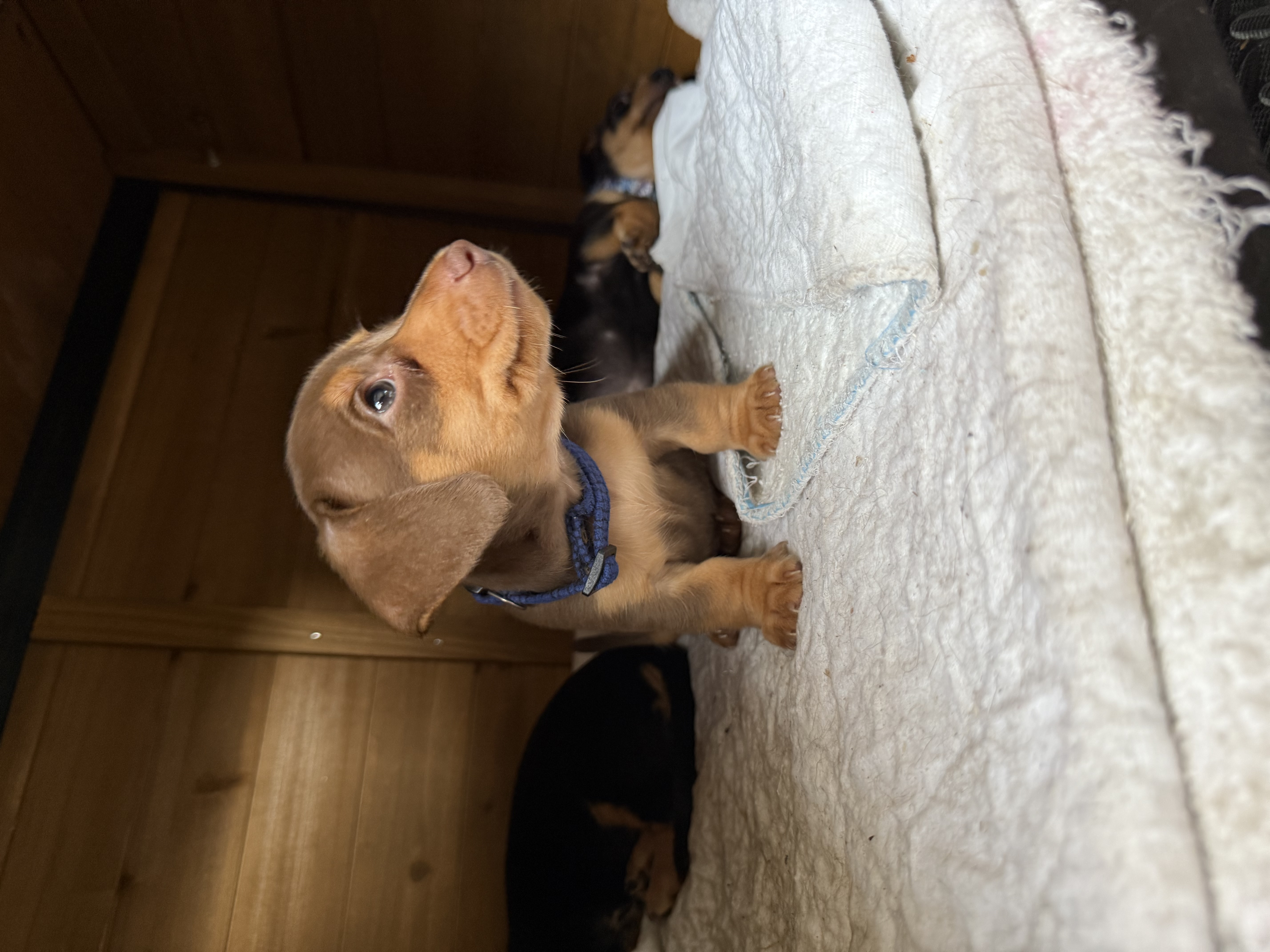 Currently being crate/ toilet trained and weaned onto royal canine dachshund puppy mix and savour life raw puppy mix