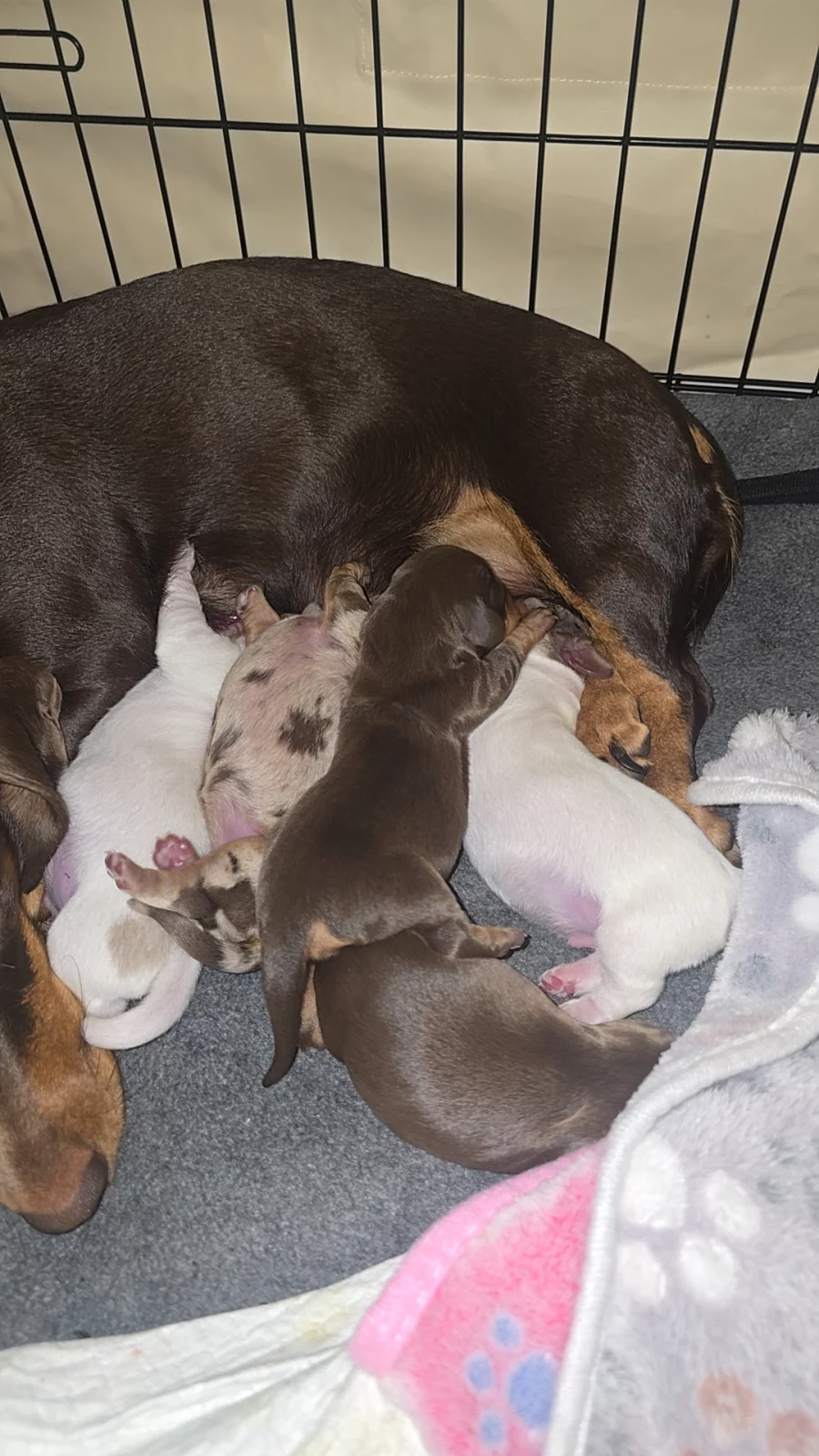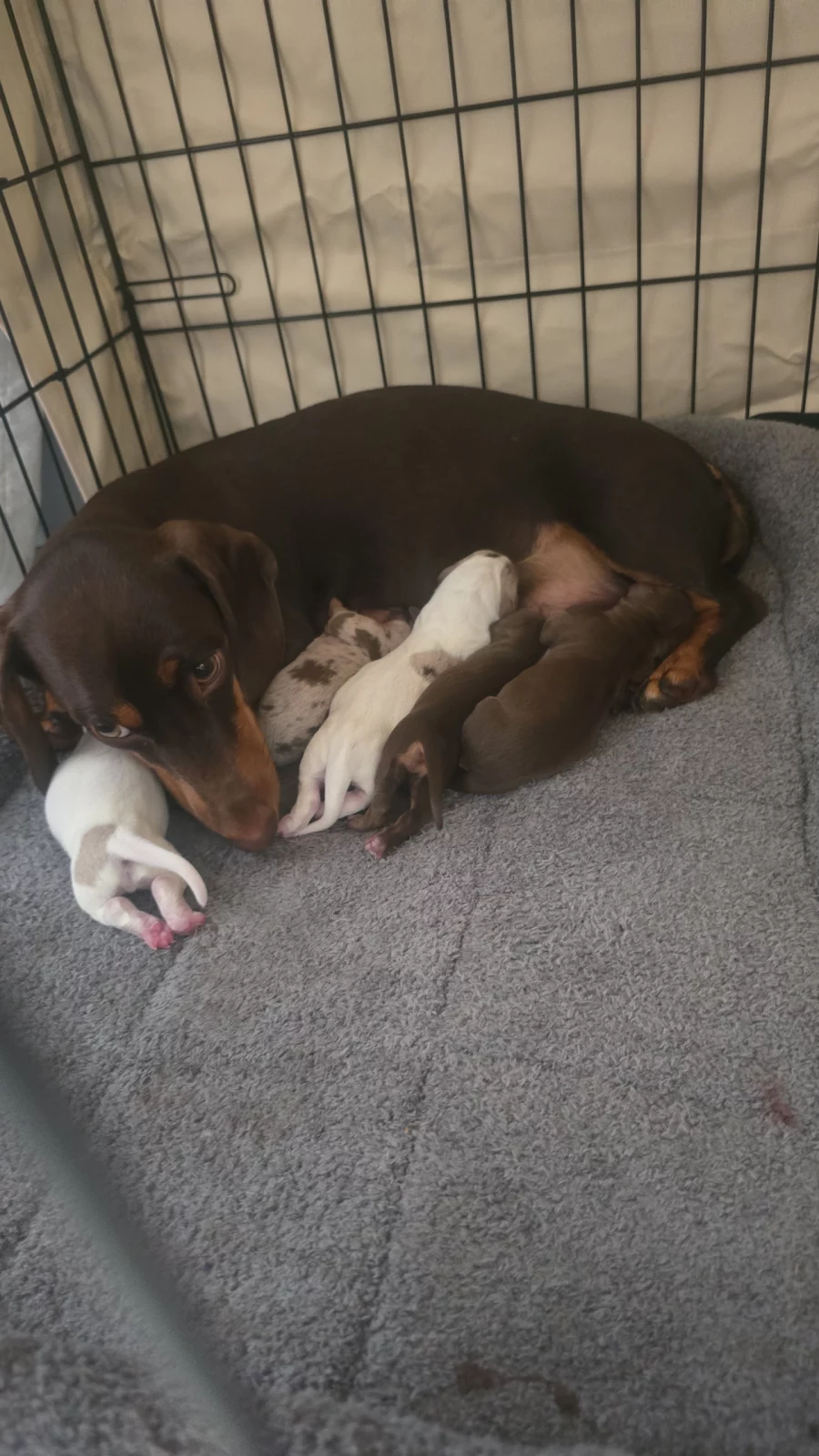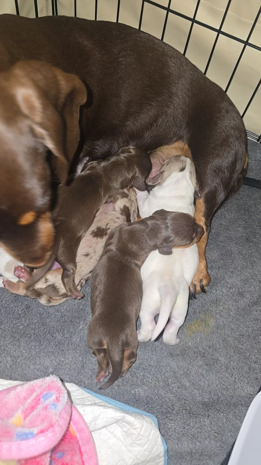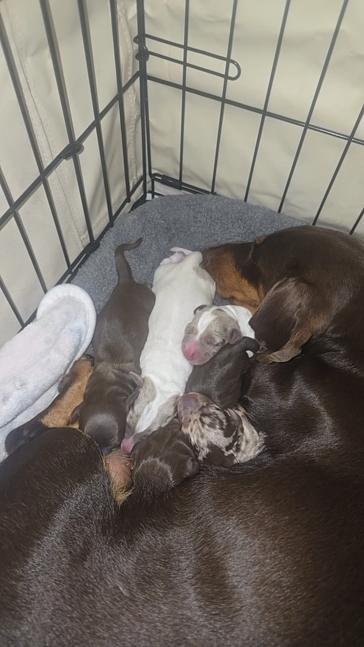 The puppies will come with documentation of both parents’ DNA fingerprint and health testing results. This testing screens for several common dachshund genetic conditions and helps ensure healthy breeding lines.