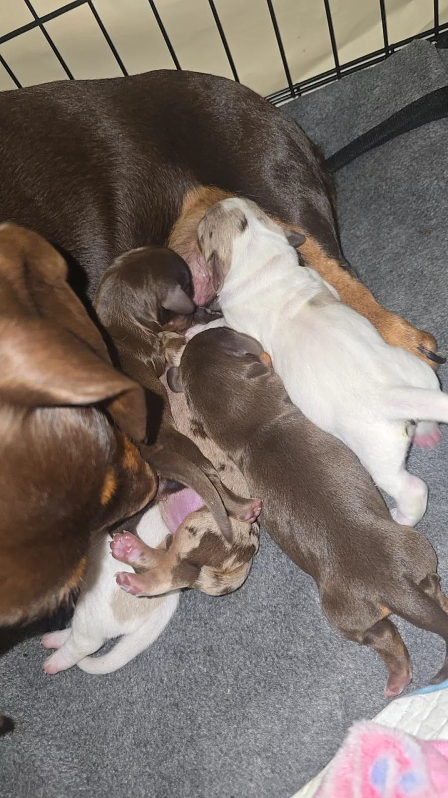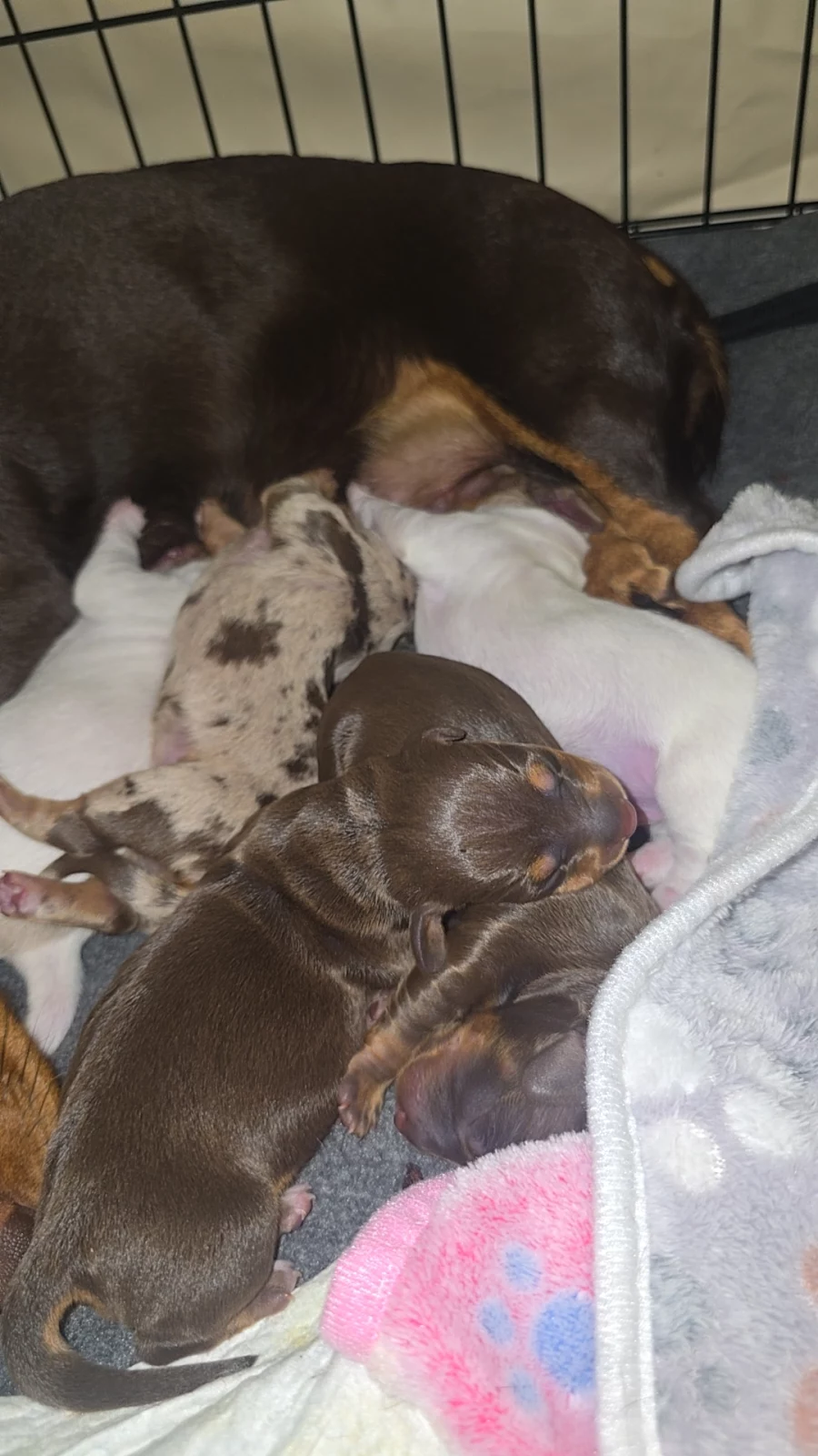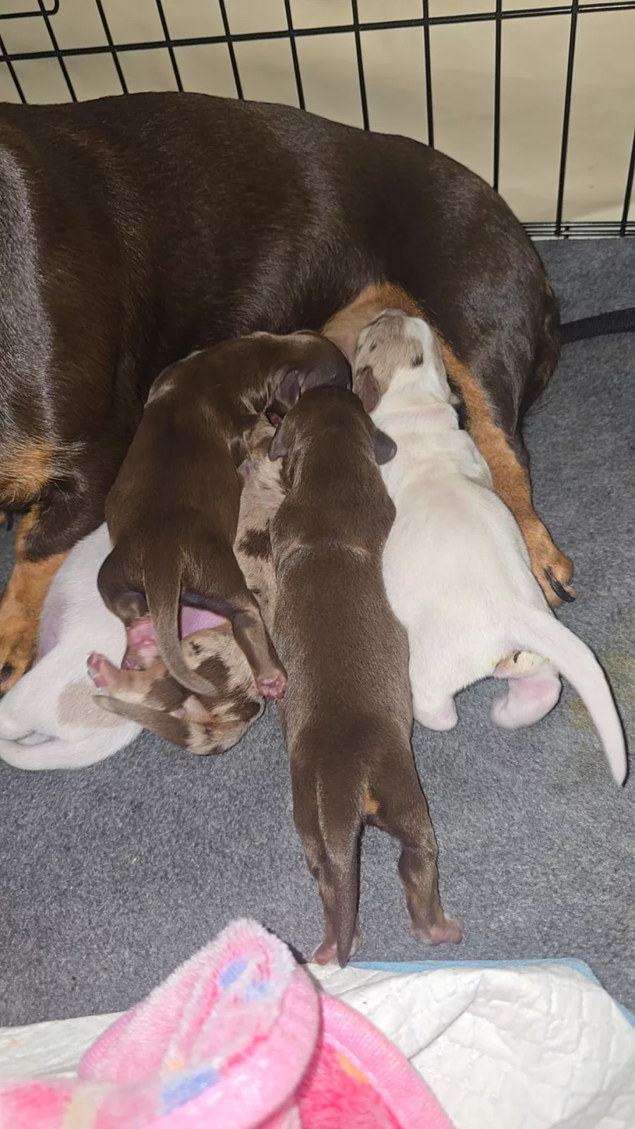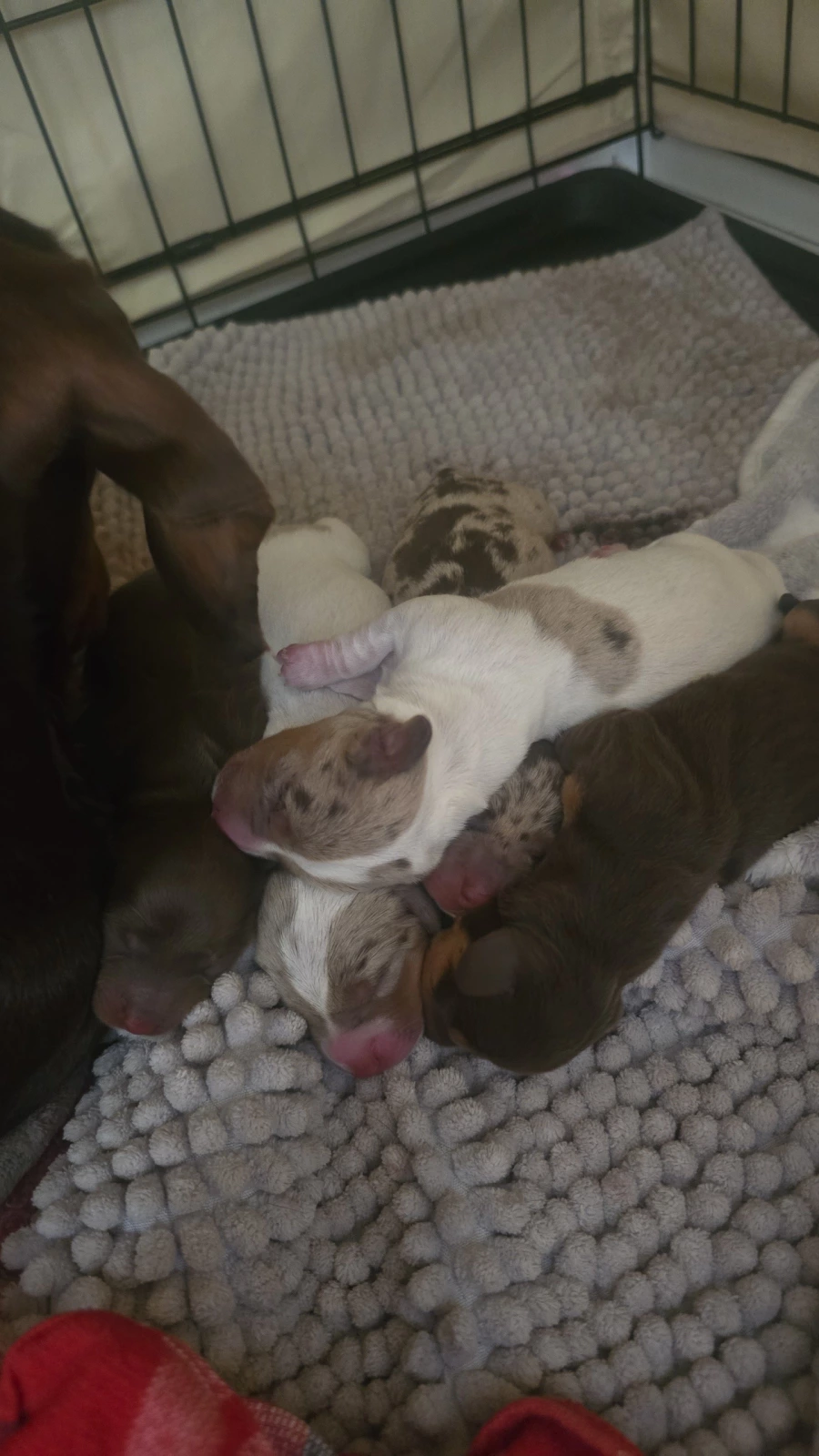 The puppies will come with documentation of both parents’ DNA fingerprint and health testing results. This testing screens for several common dachshund genetic conditions and helps ensure healthy breeding lines.