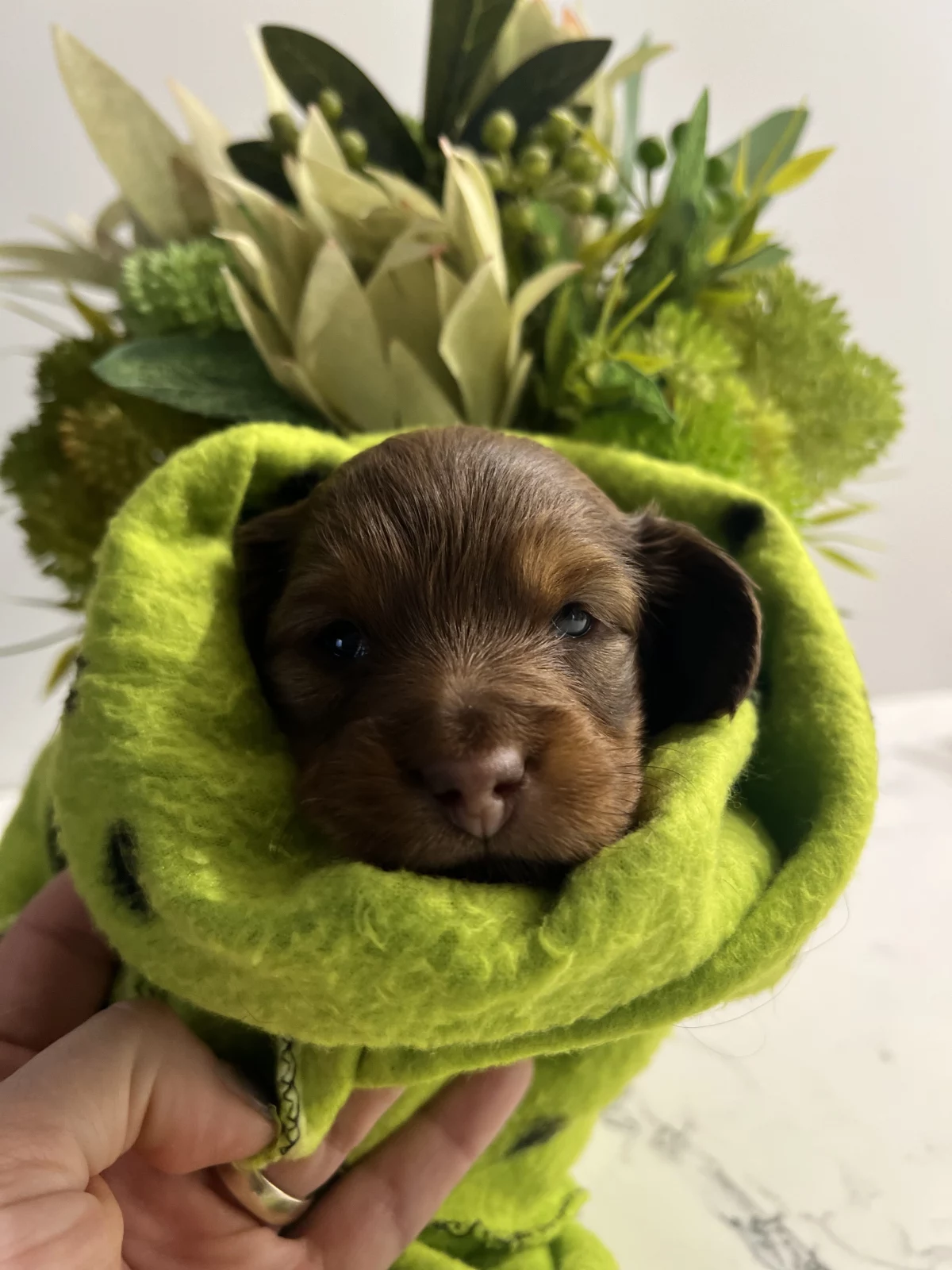 1 chocolate pup and