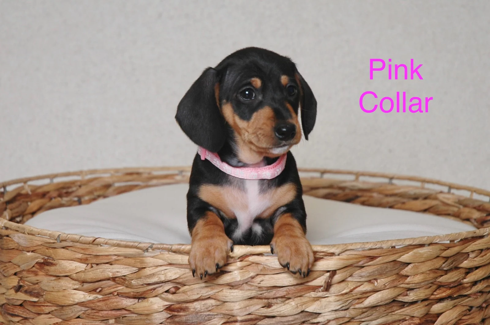 Pink Collar-Girl -Piebald - Black, Tan & white (under chin, chest & lower belly) - Microchip no: 991003002408231
