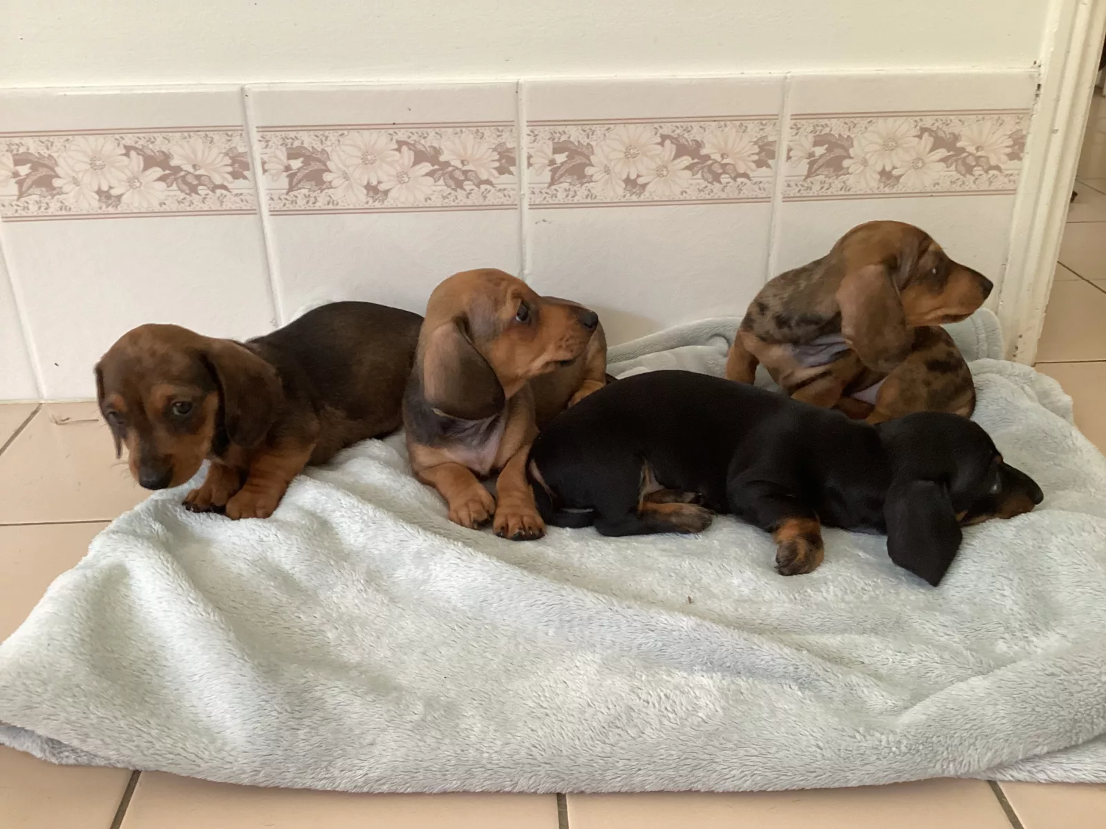 Are you looking for a lovable, sociable, and playful Miniature Dachshund puppy to join your family? We have five stunning shorthaired puppies, born on 21 February 2025, and they are ready to go to their new homes now!