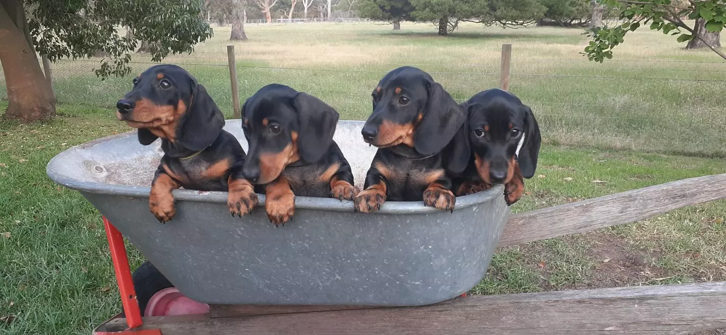 Purebred Smooth-Coated Black and Tan Miniature Dachshund puppies, ready for their new homes now.
