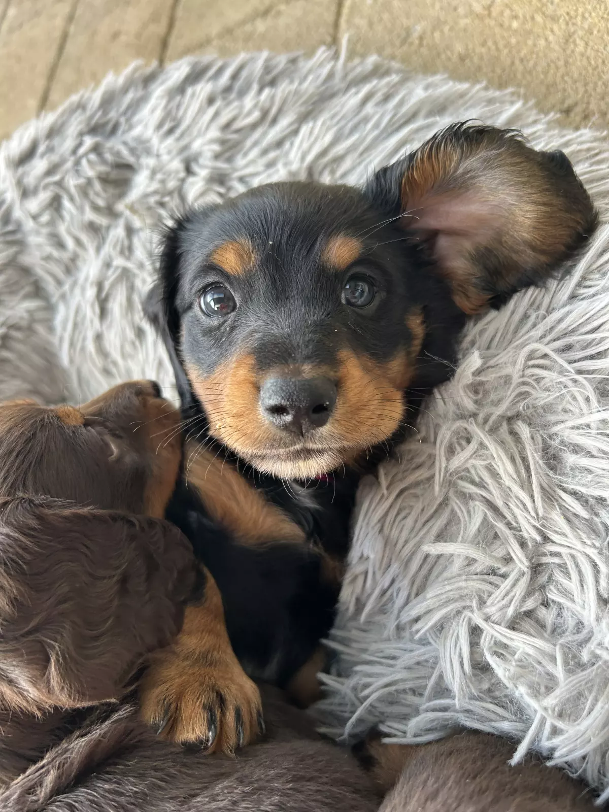 Mini dachshund puppies available from 23 July, raised with love and care in a family home. There is 1 chocolate female and 1 black and tan male looking for their forever homes. Both puppies will be ready to leave from the 23rd July, once they are the right age and fully prepared for their next chapter.