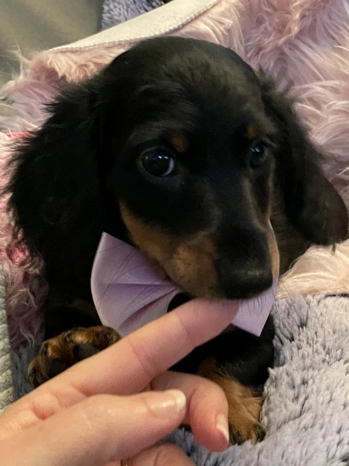 Gorgeous Black and Tan longhair Miniature Dachshund babies ready for their new home.