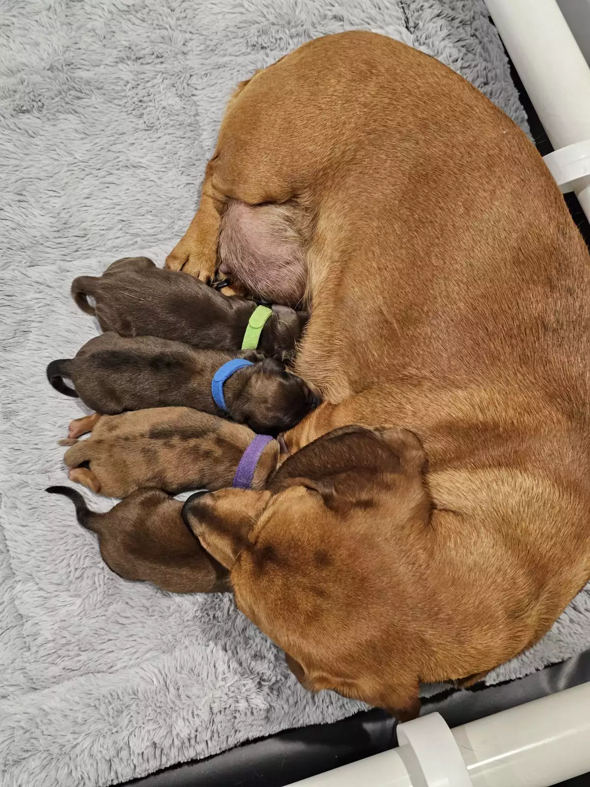 ⭐️Mum is red and dad is black/tan, Both smooth short haired.Mum and dad are both very well socialised from an early age and are used to children and other pets, so our puppies will be the same.