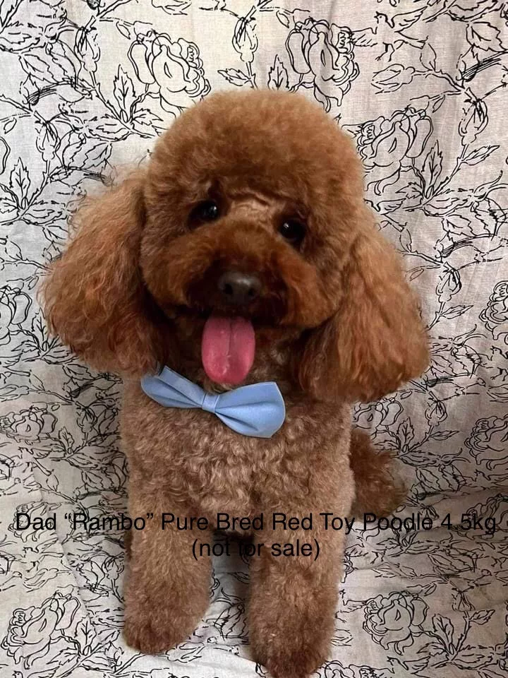 The excellent lineage promises great size and temperament: Mum “Marli” is a Toy Moodle 6kg and Dad “Rambo” a Pure Bred Red Toy Poodle 4.5kg.