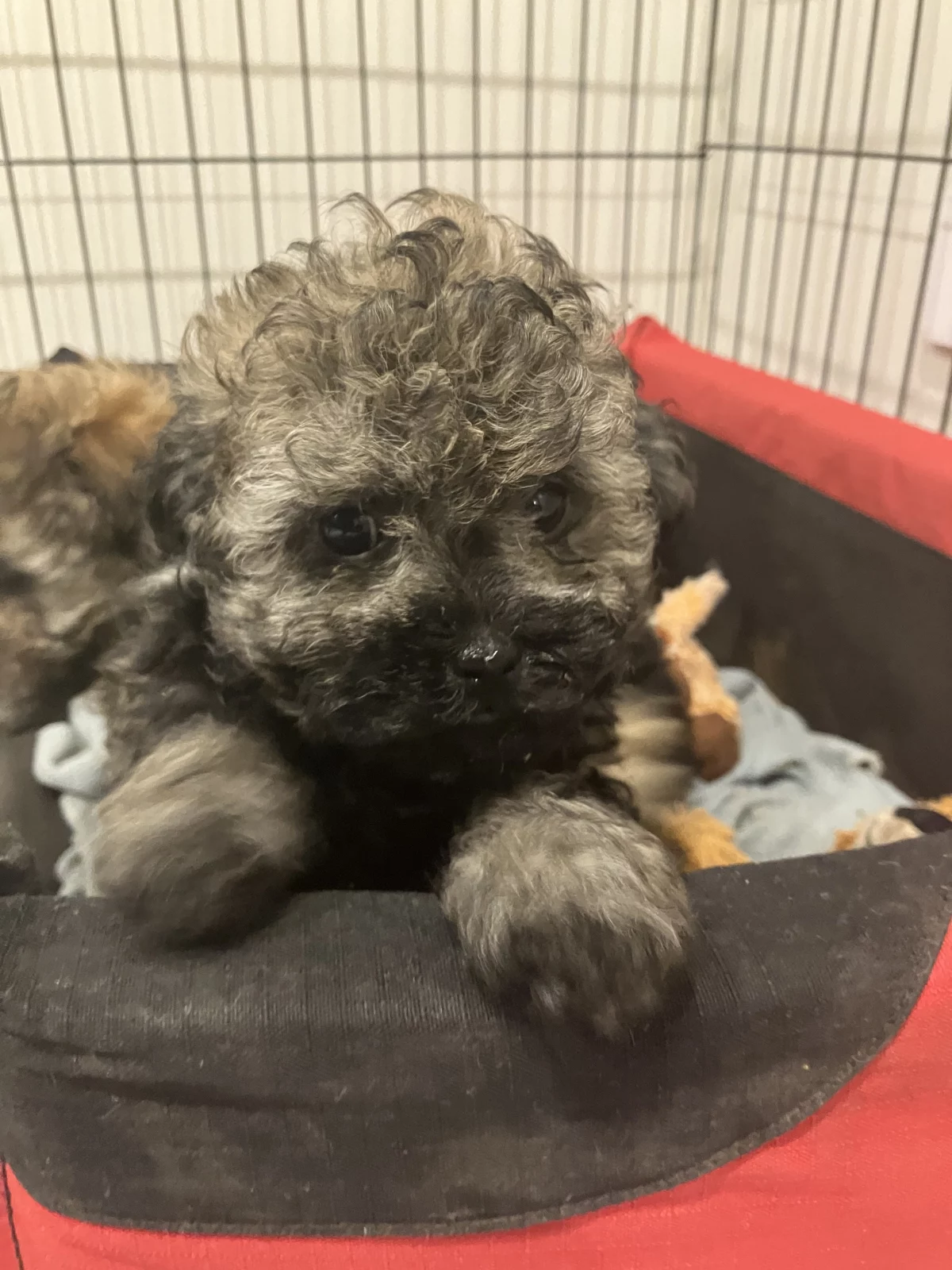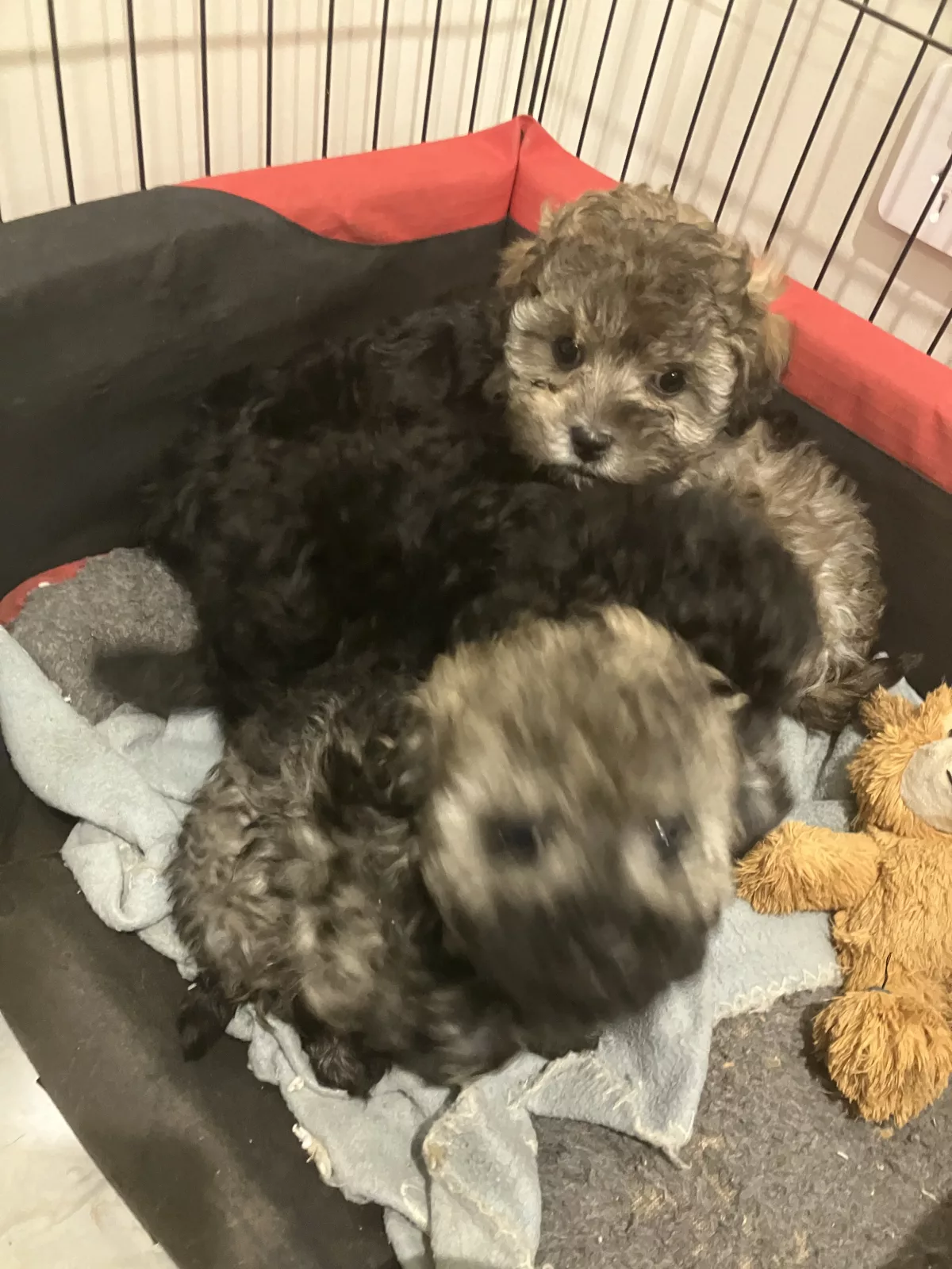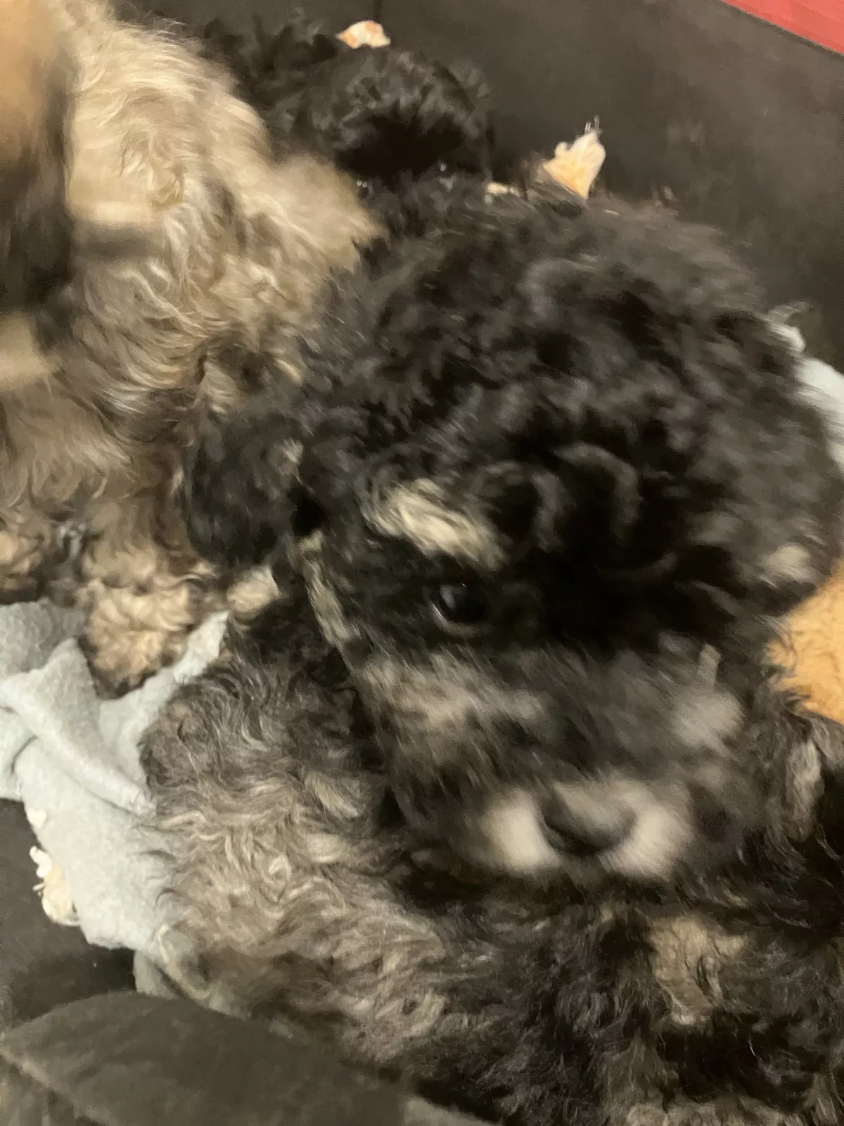 Mum is a 5 year old first generation Apricot Moodle and Dad is a 3 year old purebred Blue Phantom Toy Poodle. Both parents are DNA tested. Wonderful loving temperaments, photos of both parents attached.