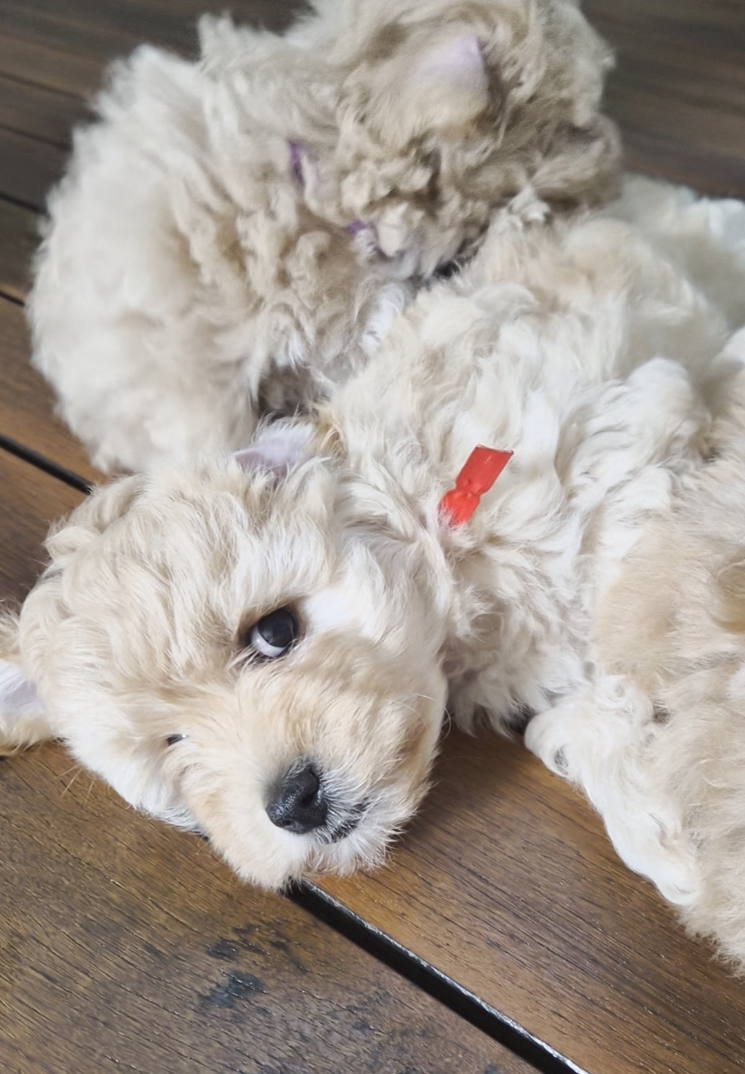 Two gorgeous fluffy male Moodles ready to meet their new families.