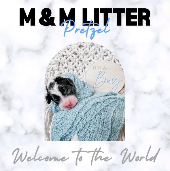 Pretzel - Black & White Parti with some tan points on tail & cheeks, he was the heaviest and first born.