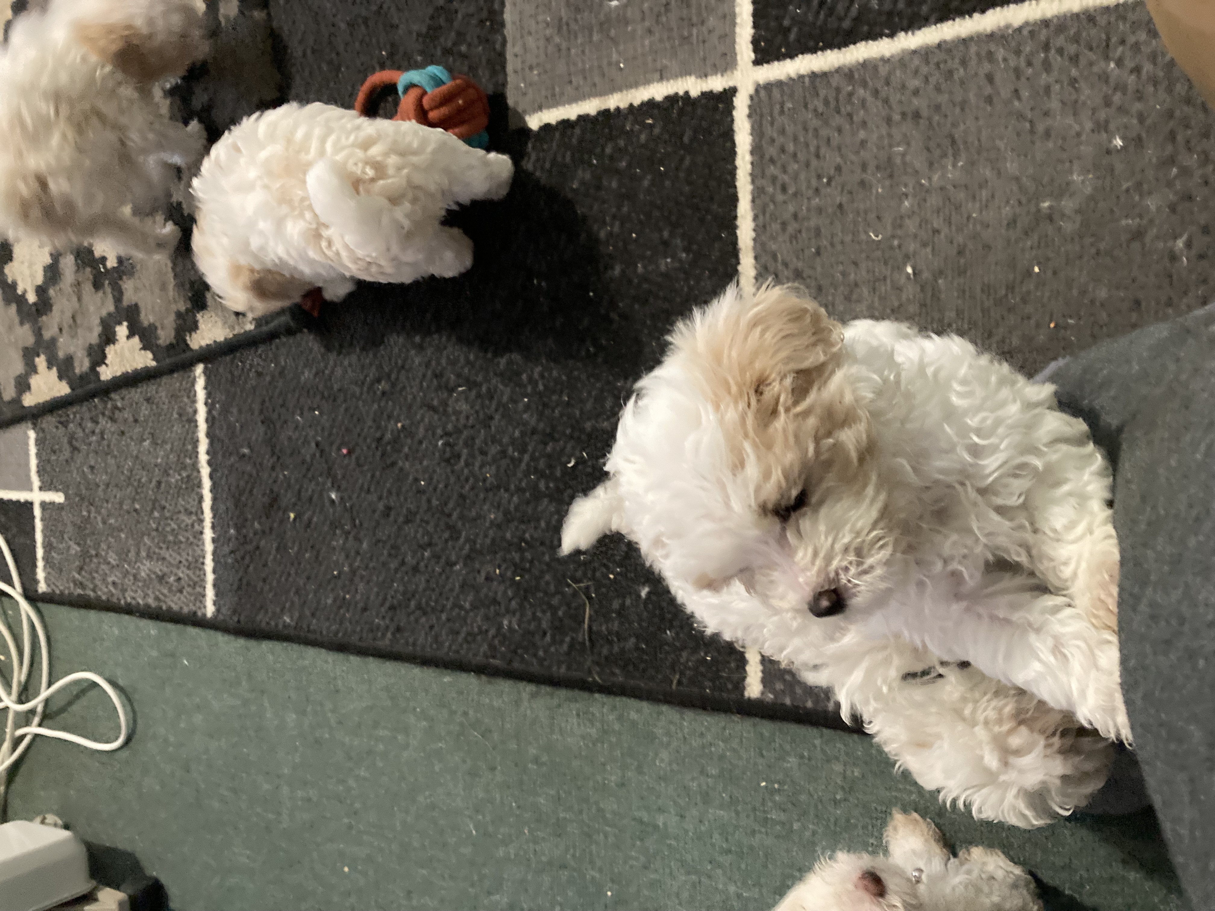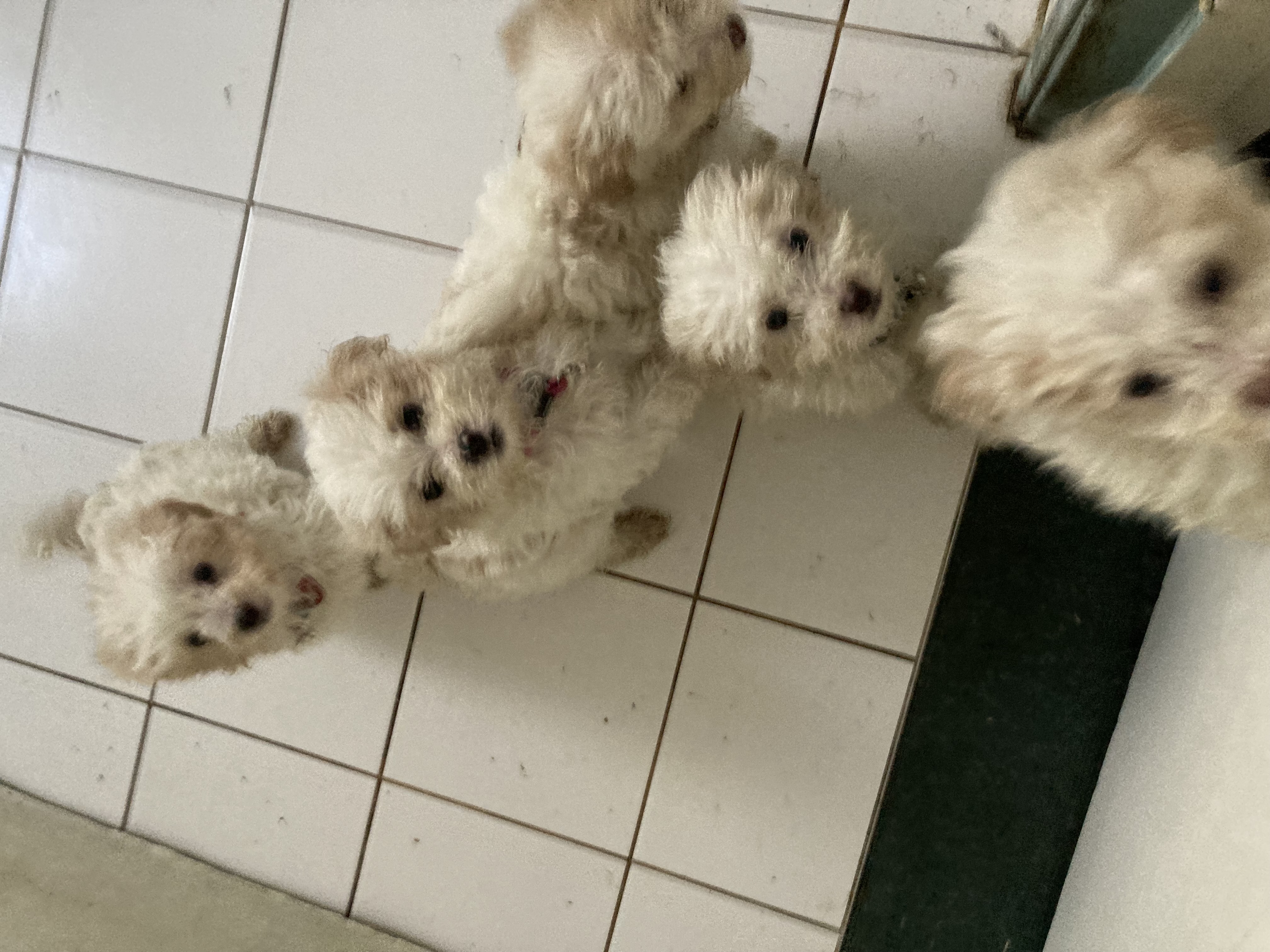 These adorable Maltese x Toy Poodle puppies are ready for their new homes! All pups are a beautiful white colour, exhibiting the irresistible features and fluffy coats of this popular crossbreed. They are highly sought after as non-shedding puppies, making them suitable for many families, but owners must commit to regular grooming to prevent matting and keep their coat in top condition.