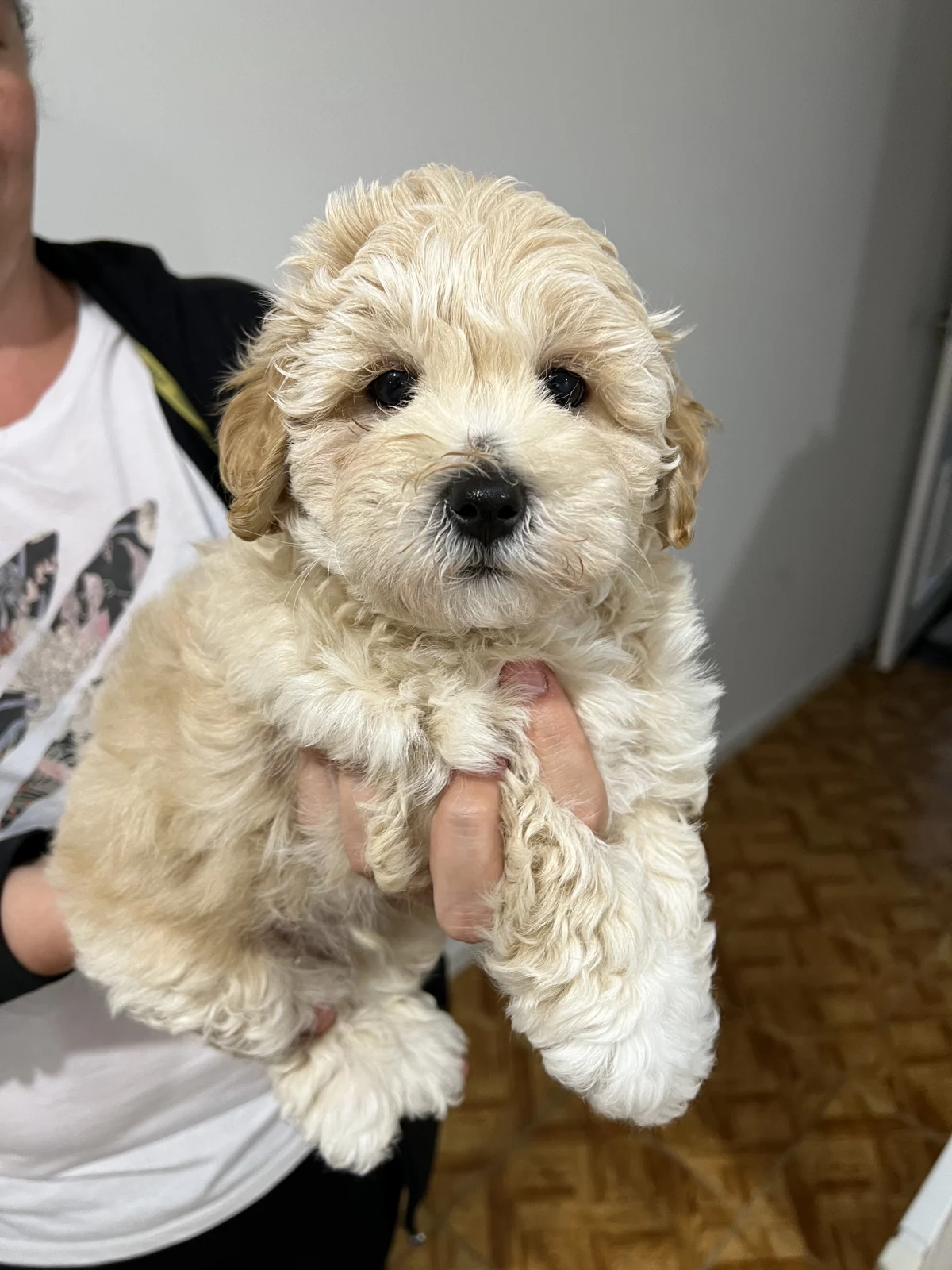 Mum and Dad are both Moodles and weigh 4.9kg, they are both non shedding and are our family pets.