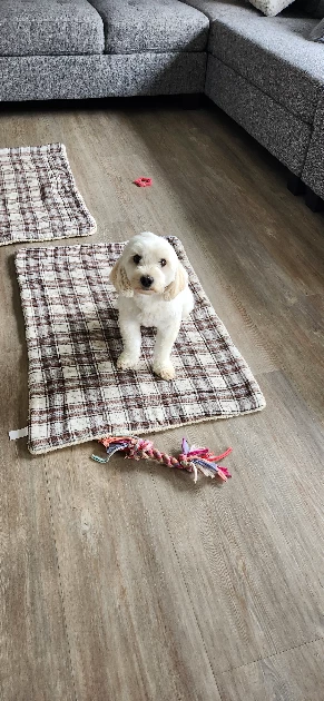 She is fully prepared for a healthy transition, being Microchipped and fully vaccinated (paperwork provided). As a Moodle, she has a desirable low-shedding coat, which is excellent for indoor living, though consistent grooming is vital to maintain her coat health.1 She is ready to be a cherished companion in a loving, dog-friendly environment.