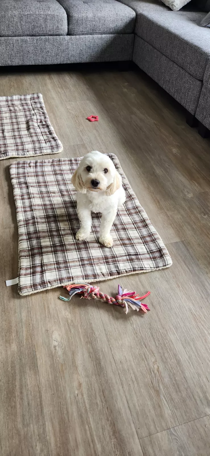 This lovely 4 year old neutered female Maltese x Poodle (Moodle) is regretfully for sale. Being a mature young adult, she is past the demanding puppy phase and offers a stable, affectionate demeanour. This breed is known for its intelligence and devotion to family.
