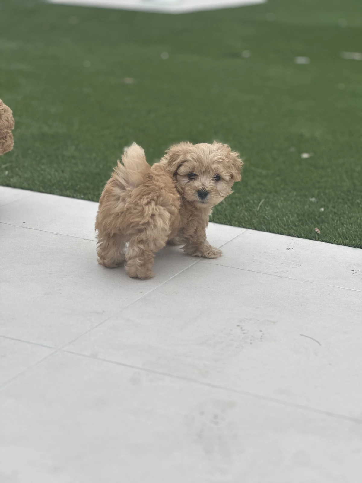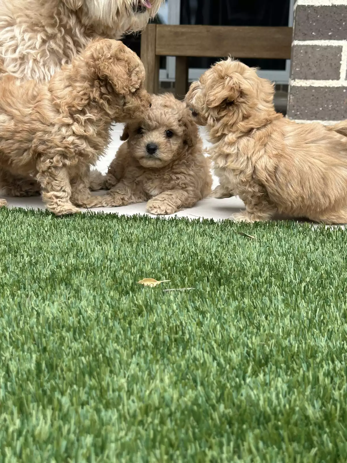 Our female Coco is a Toy Moodle. A nurturing, natural mother. Adult weight 4kgs.