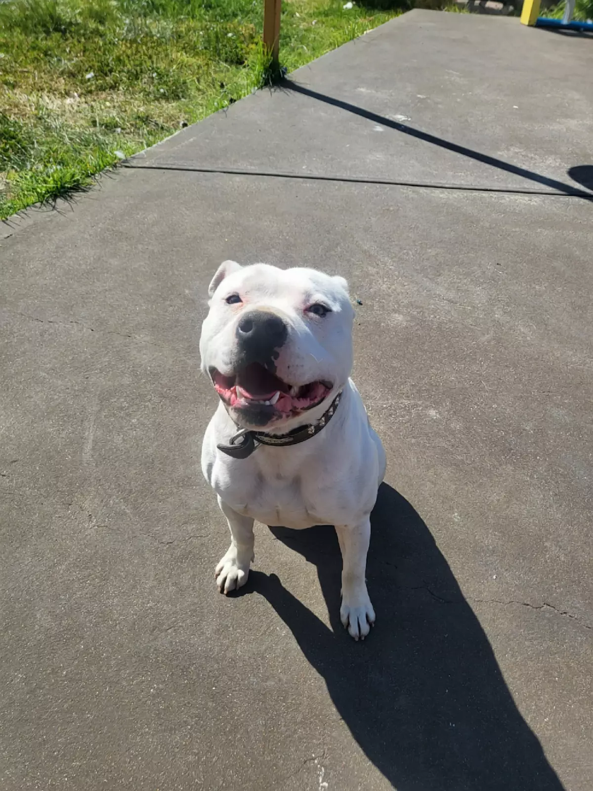 Medium-sized male American Staffy, 1 and a half years old, full of energy and personality.