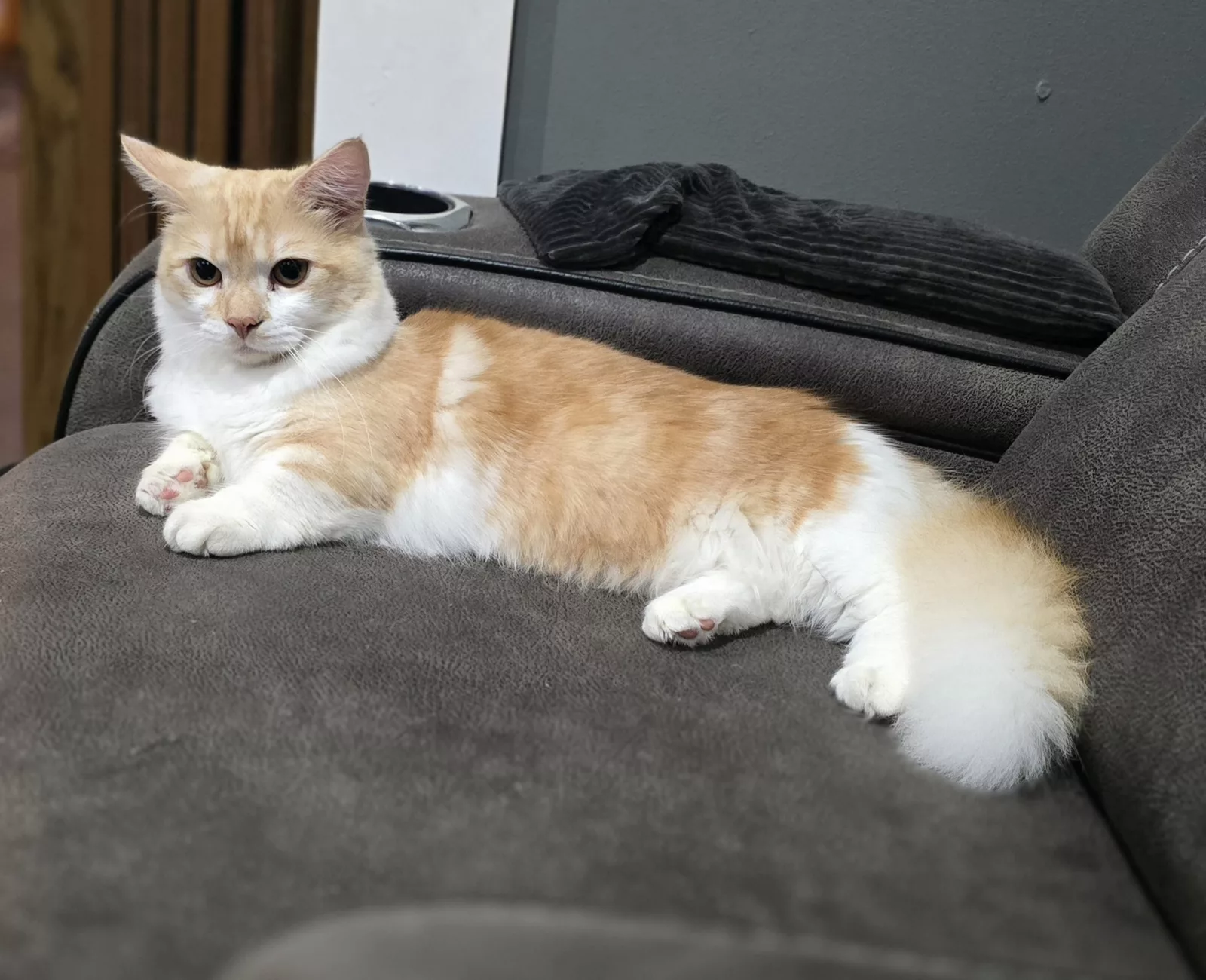 He has a beautiful long ginger and white coat with short legs that make him even more charming.