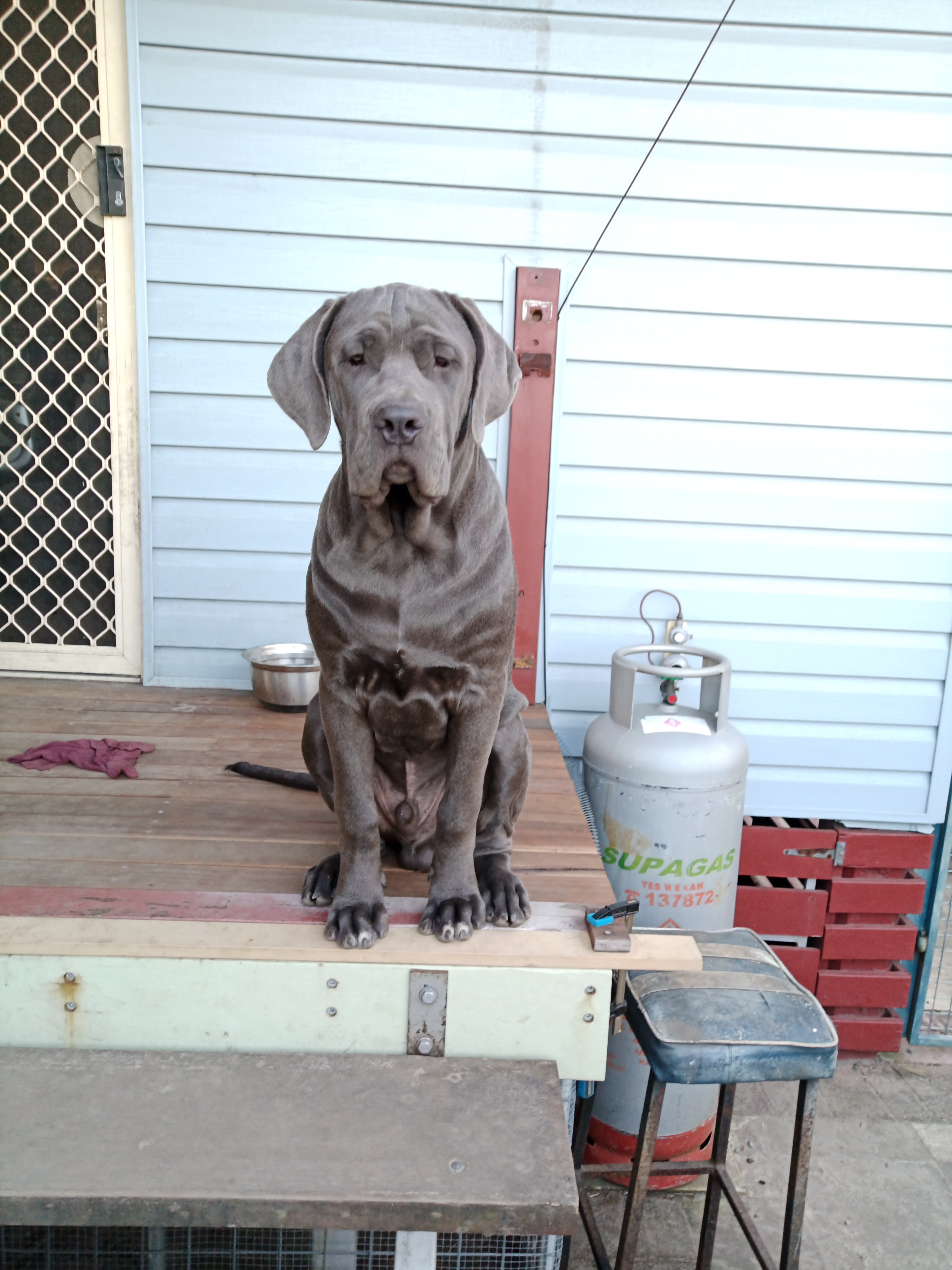 NEO MASTIFF MALE 12 MONTHS OLD, GOOD DOG PUREBRED , PROBABLY BETTER IN A ONE DOG HOUSE GREAT GUARD DOG , NEVER BEEN ROUND KIDS OR ANYTHING JUST A BIG PUP REALLY