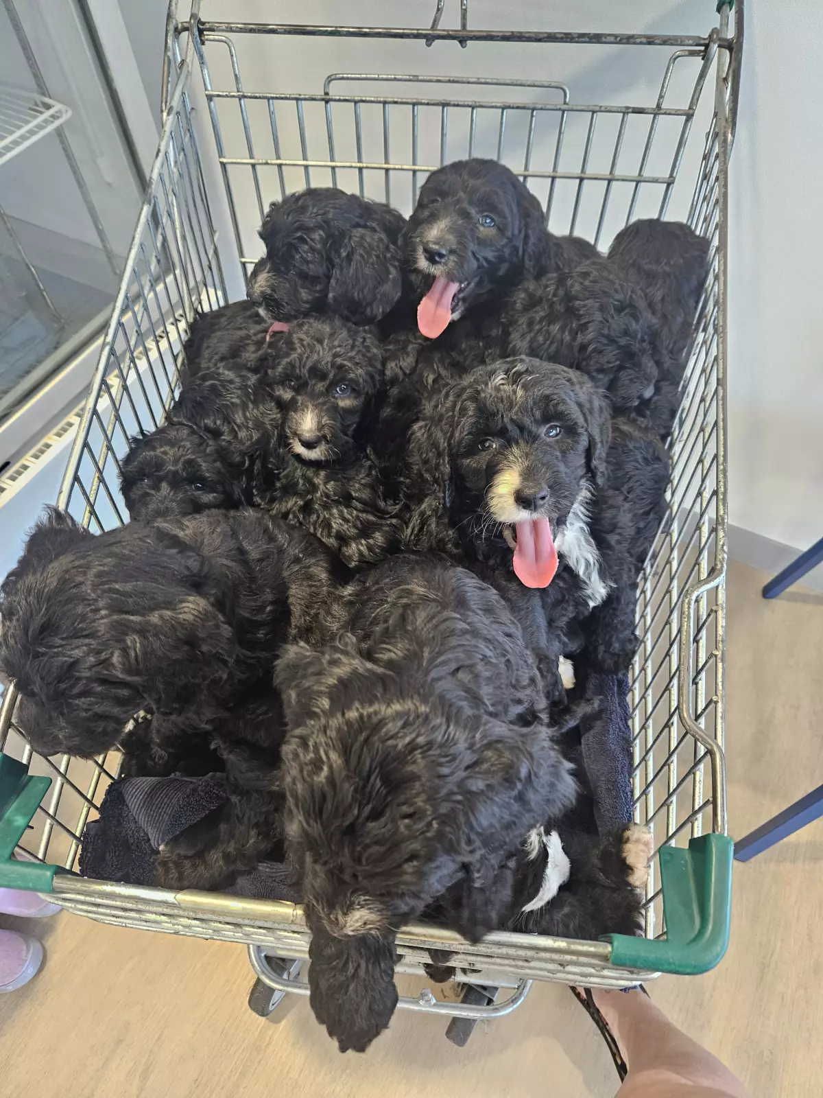 Sheepadoodle pups have beautiful soft non-shedding coats - making it ideal for people with allergies.