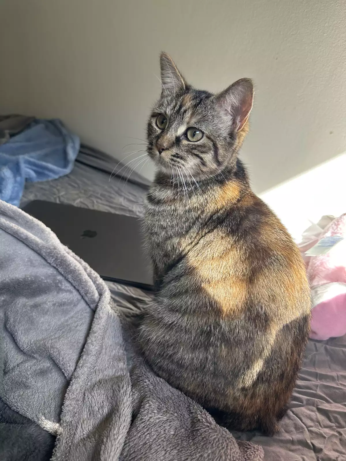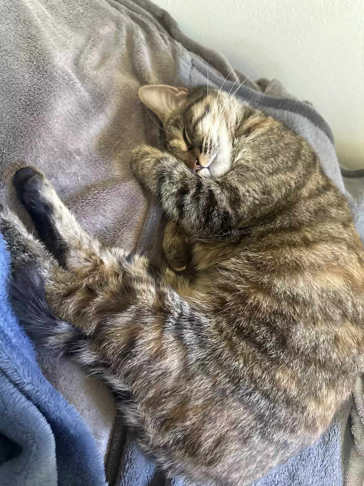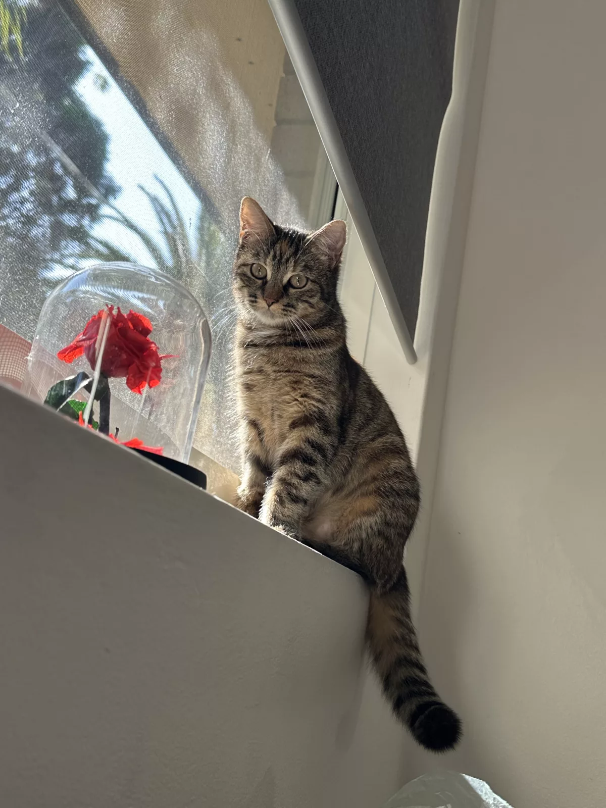 tabby x ragdoll , naturally small female cat- desexed, vaxxed, flea treatment done. Very good with other cats, cuddly.