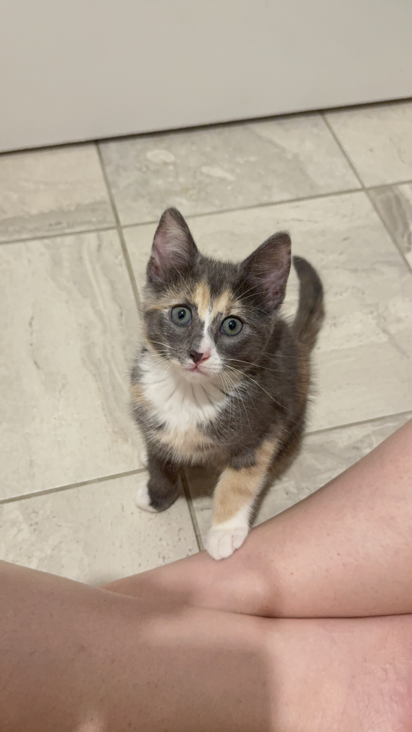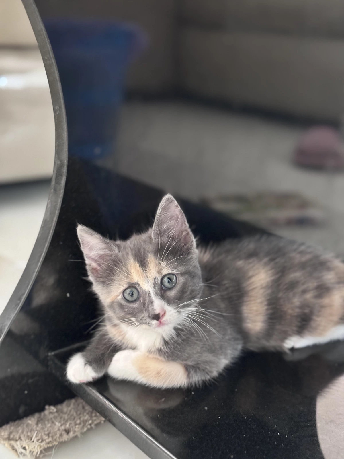 This cat need a new home due to my family being extremely busy and couldn’t give her the attention she wants. She is a calico cat currently 7months we include all the things the cat need bed, cat tree etc