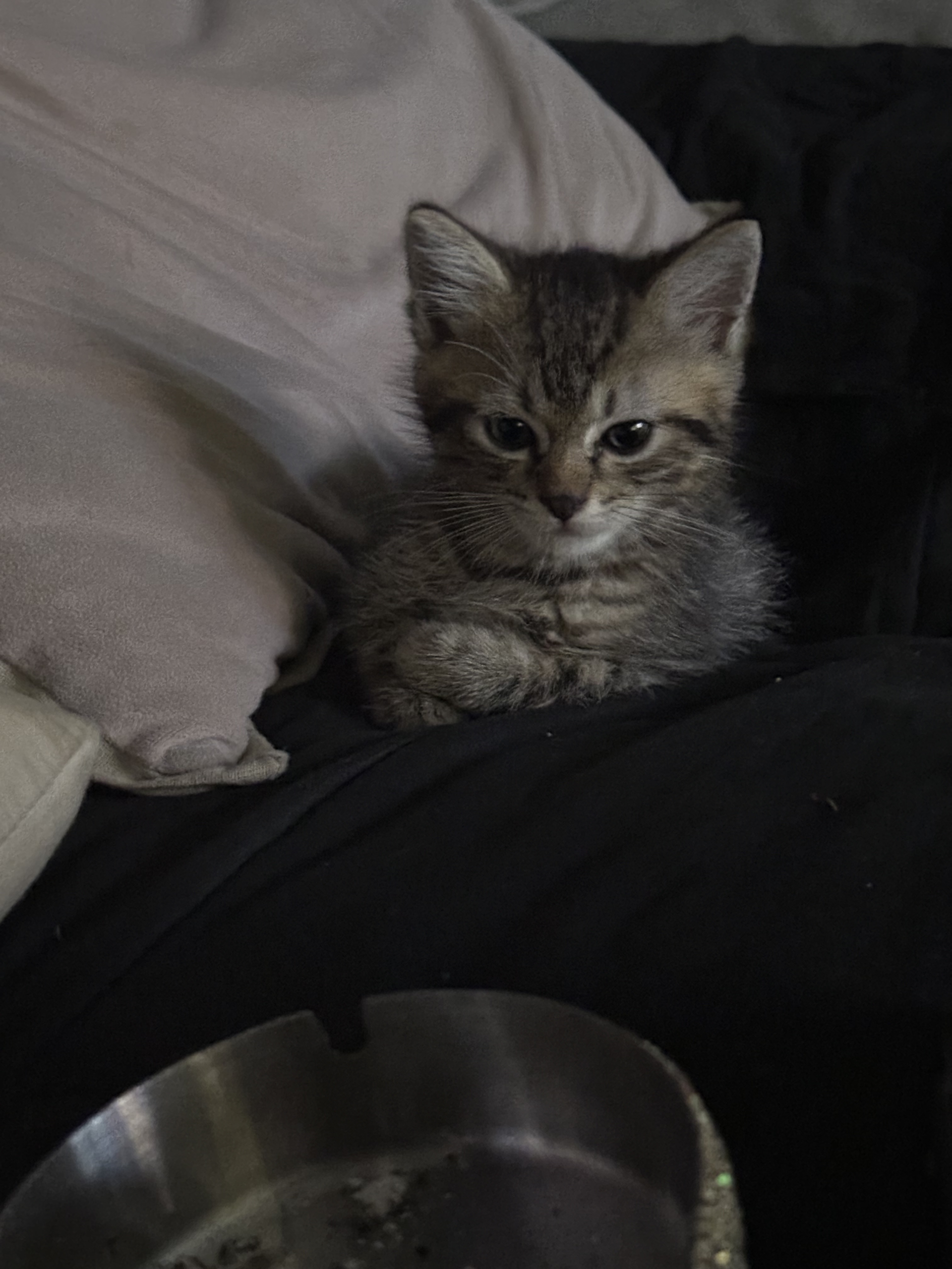 I have found this kitten in the side of the road in the ran and he was terrified and I was worried he was going to get ran over so I took him home. I am unsure of his breed or age, but he is so tiny so I am sure he is no older than 1 month old. He is so lovely and friendly although I am not able to keep him and don’t have anybody to give him to so I am listing him here in hopes somebody will lovingly take him. NEED HIM GONE ASAP