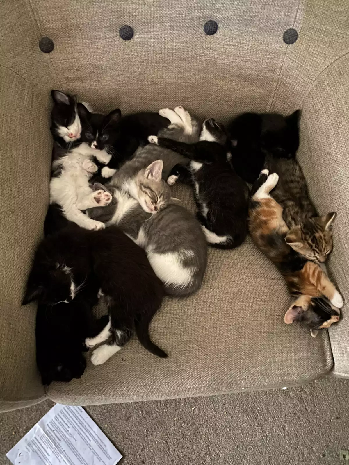 - they are used to only being inside once older can be transferred to inside and outside cats, they eat kitten food and kitten milk.
