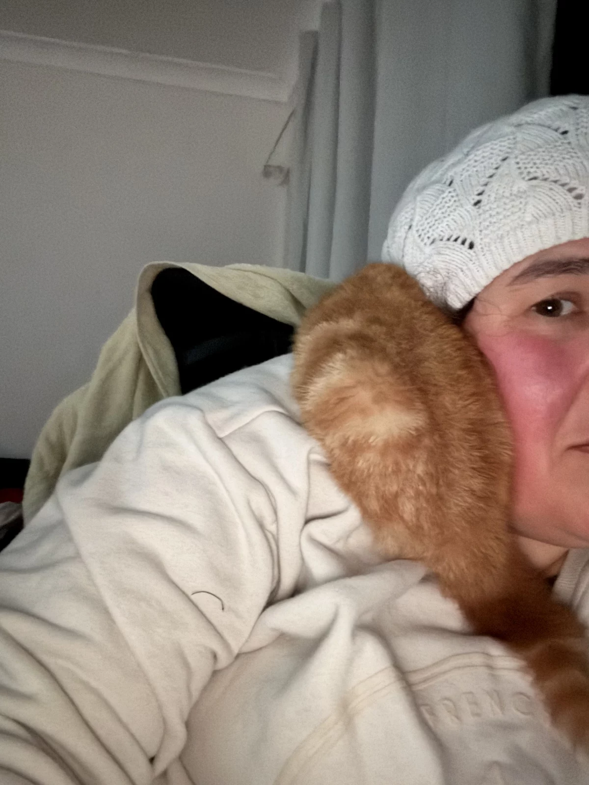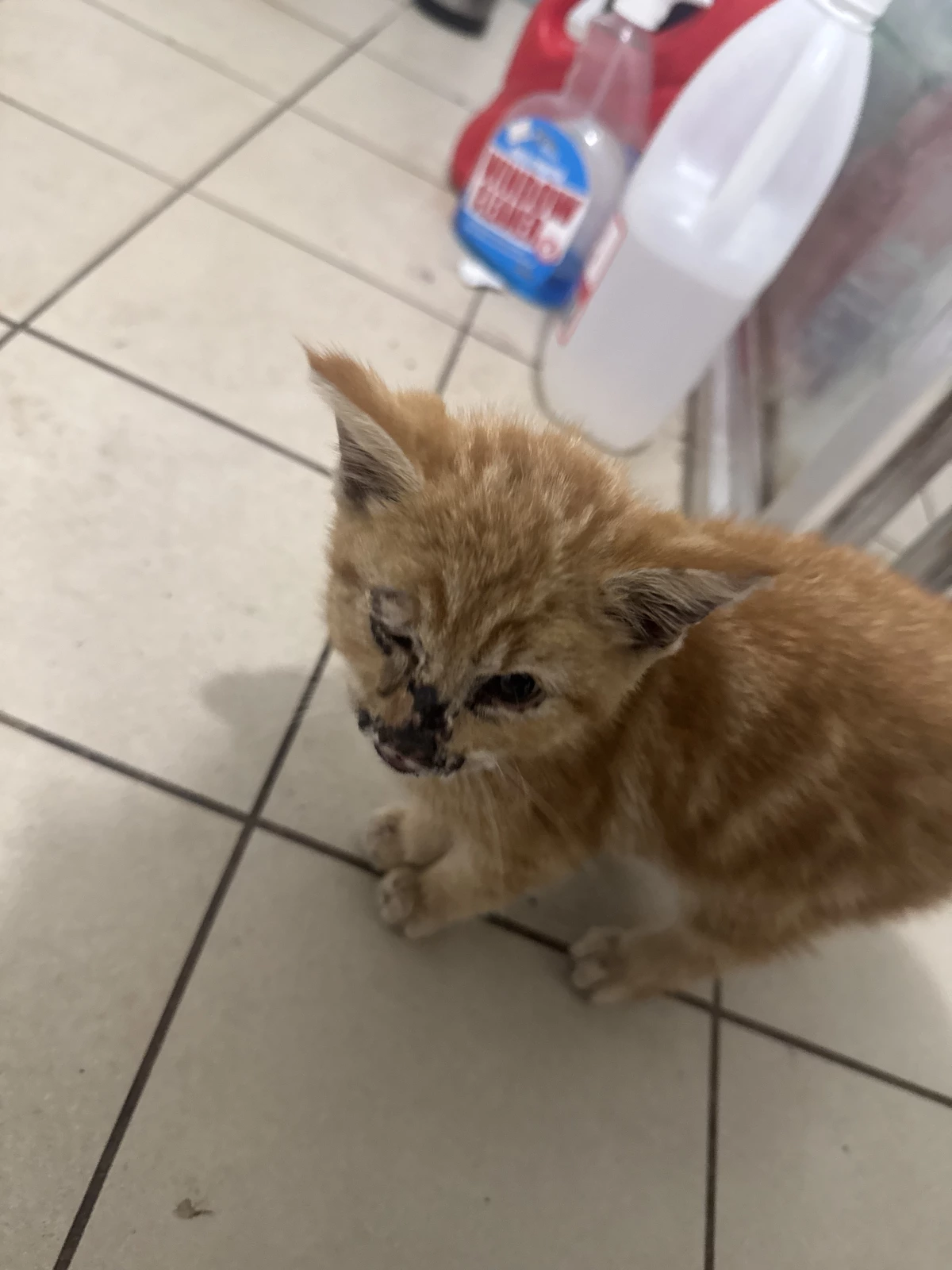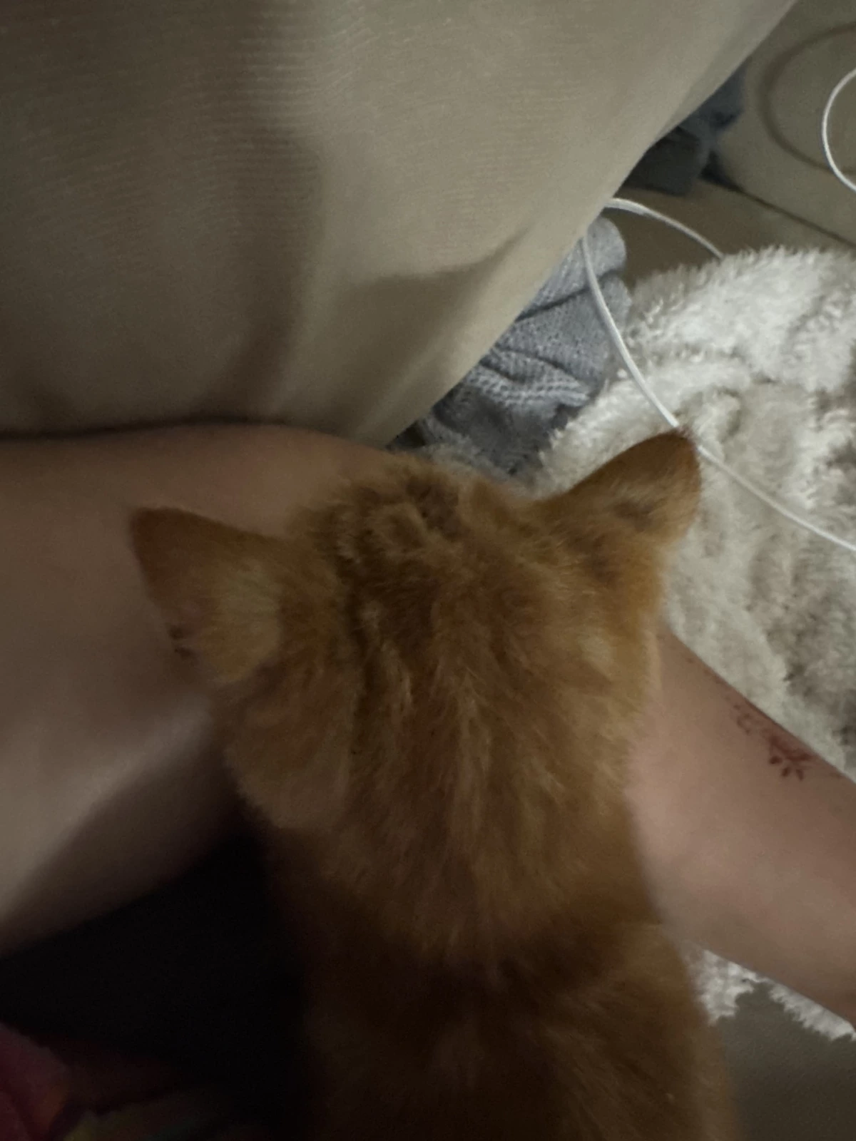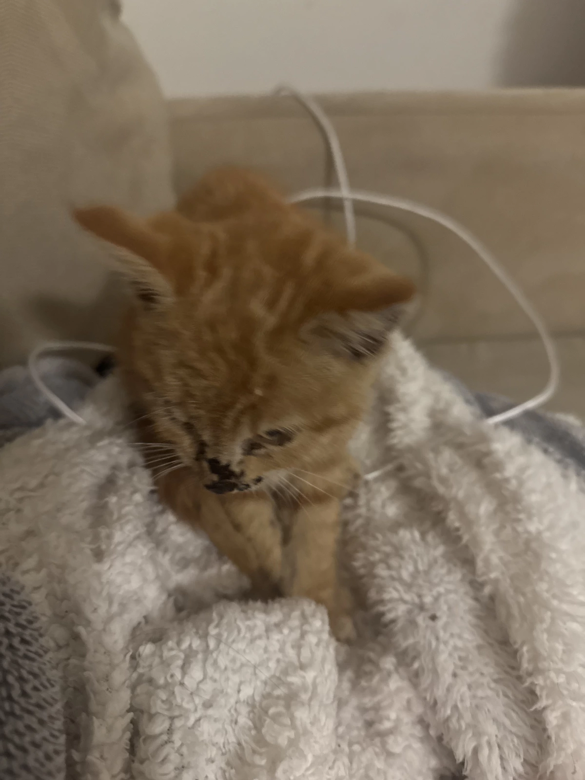 This kitten found me in a park while I was riding my bike. He was crying for help and was purring in such a short time. He is very chatty and always purrs. His following me around the house. I wish I could keep him but my partner doesn’t let me. He loves to sleep on my shoulder. His very sweet.