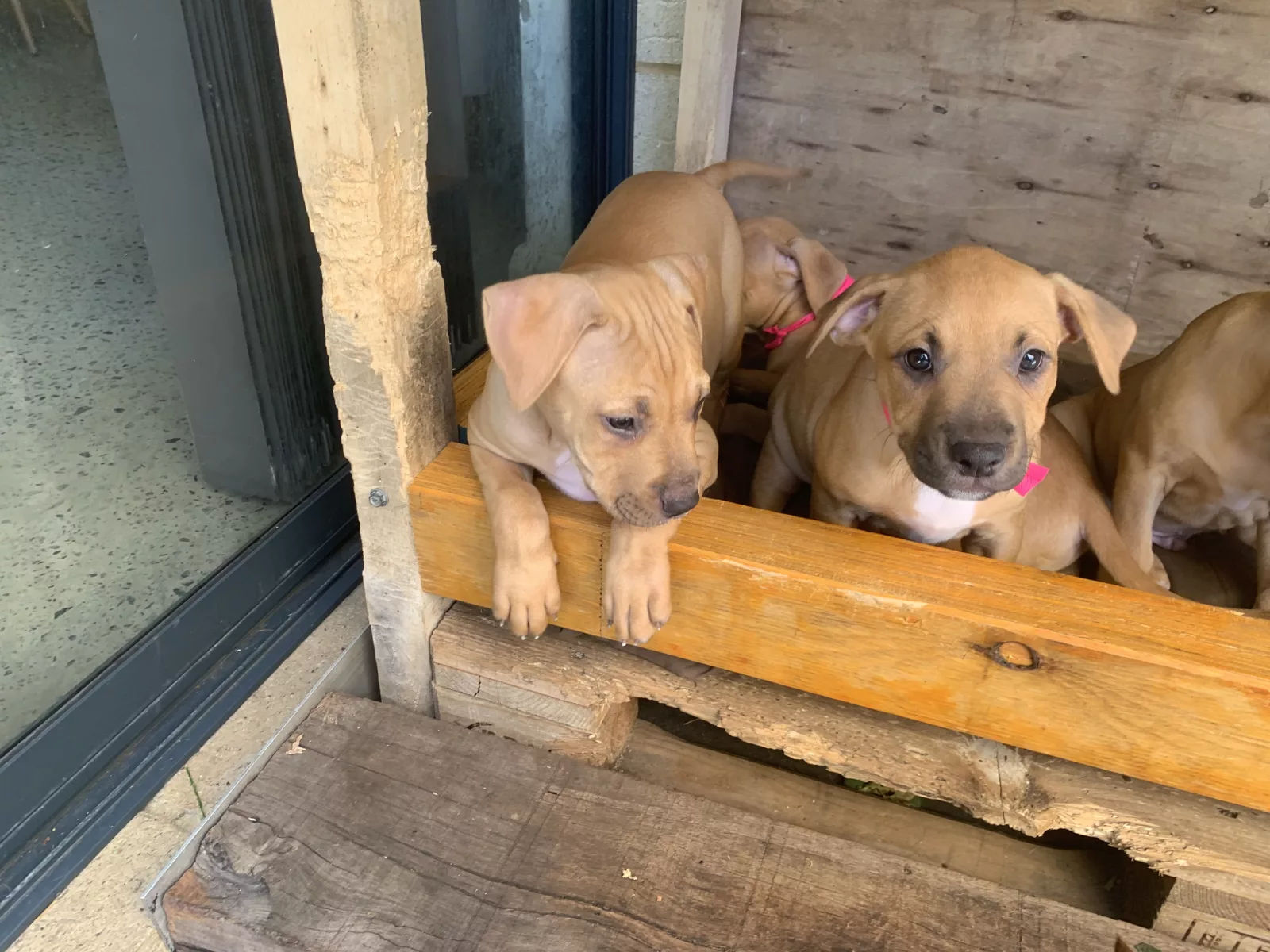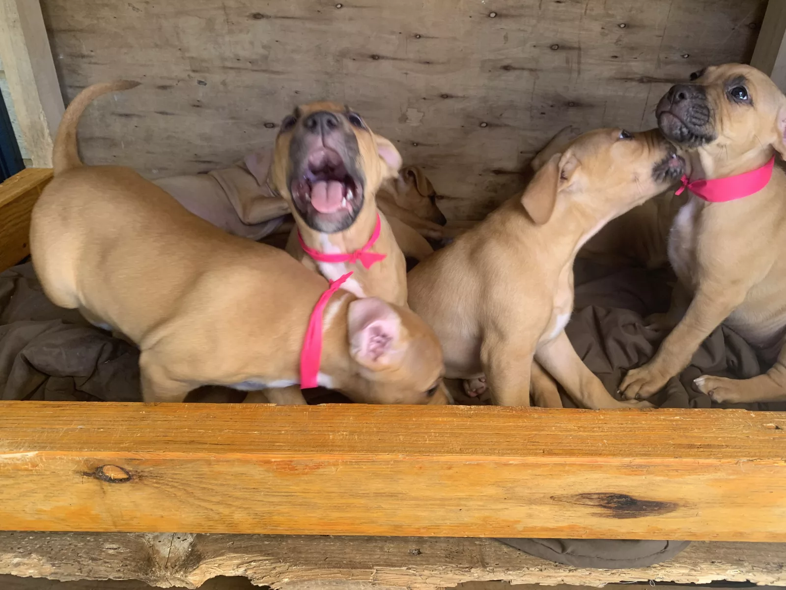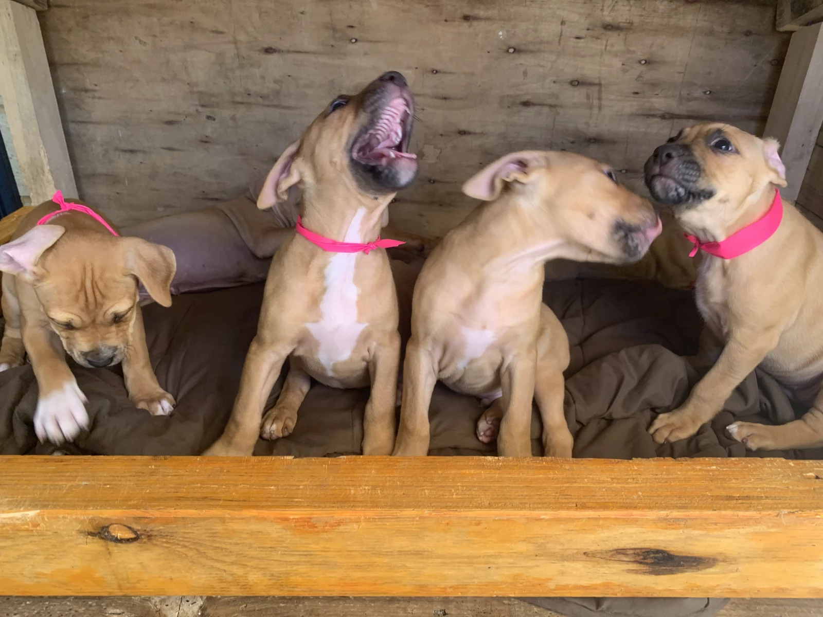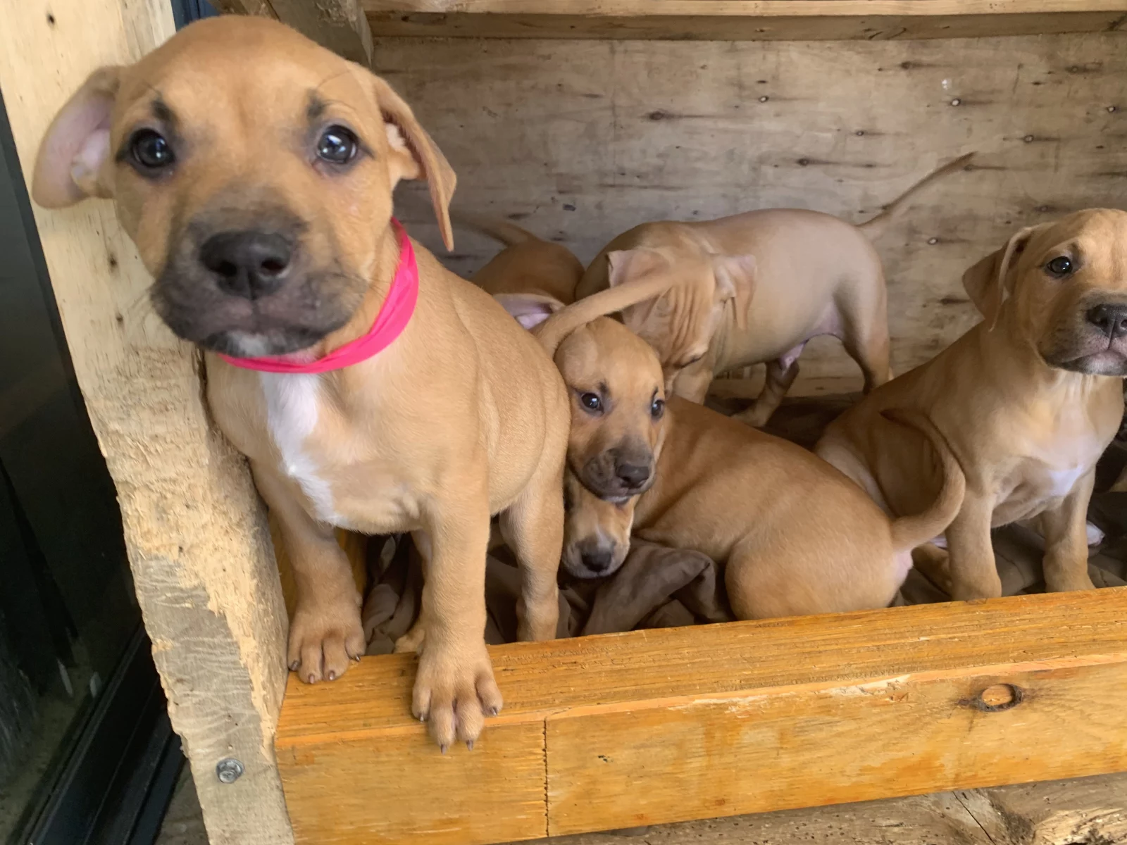 5 Girls: pink ribbons all pretty big just as big as the boys if not bigger.some have few white markings mostly tan with white chest’s really gorgeous looking puppies